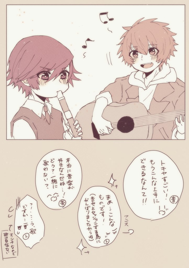 リクエストでショタトキヤ×高校生音也のセッション。音也くんとセッションするためにリコーダーの練習を頑張るトキヤさんって可愛いですよね。でもまだこの時期はまだトキヤさんは音痴で歌には自信がなくて、音也くんと一緒に歌うことで、もっと歌いたいって気持ちが芽生えるきっかけになってるといいなーと妄想していました😌💭