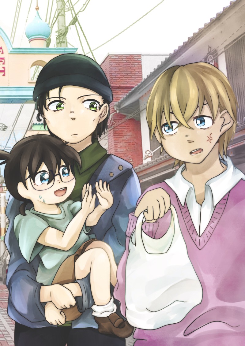 荷物じゃんけんで負けた安室透となにも持つものないからと言ってコナンくんを持つ赤井秀一