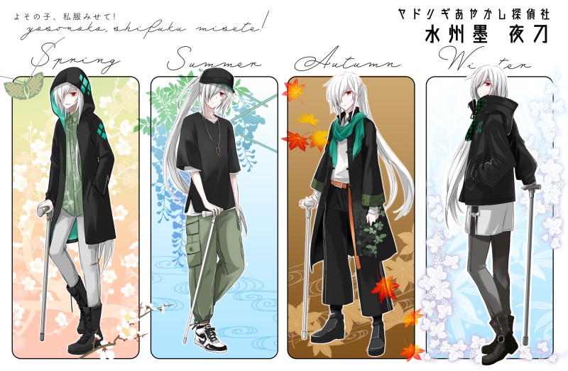 ヤドリギあやかし探偵社で春夏秋冬4種類立ち絵揃ったのでこちらにもアップ。ポーズも全部変えてがんばった🌸個人的には夏と冬がお気に入り。