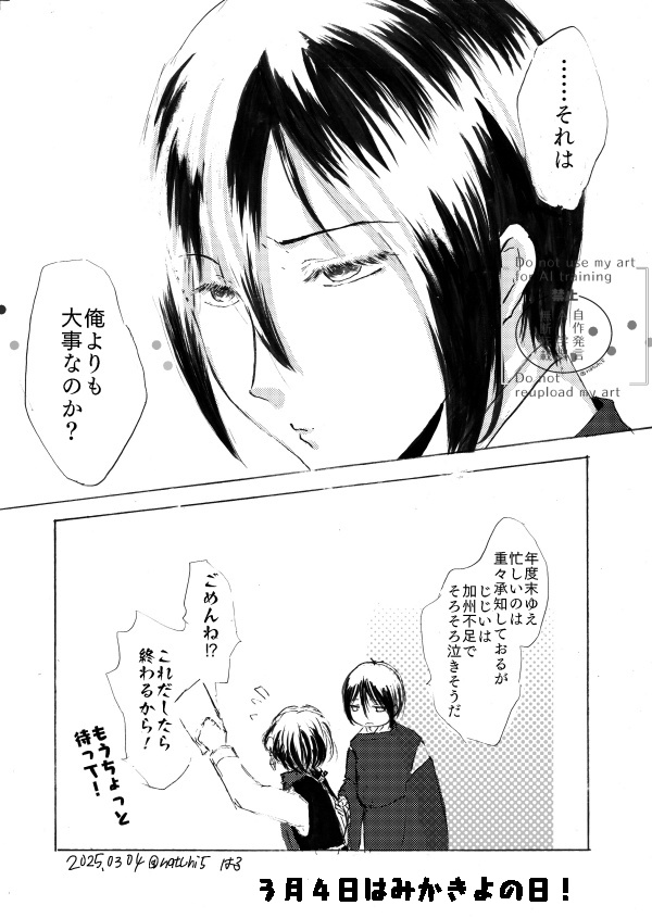 natuhi5☆quiet followDONEみかきよのひ! せっかくなのでお遊びのネタを。rpお遊び付き合ってくださってありがとうございました!#3月4日はみかきよの日#みかきよはいいぞ#みかきよの日#@natuhi5みかきよ #みかきよ unpaidIncome Tap to full screen (size:600x845).Repost is prohibited Let's send reactions! freqpopularsnackothersPayment processing Replies from the creator Follow creator you care about!☆quiet follow natuhi5DOODLE2025誕生日絵元イラスト 4 natuhi5DONE一か月くらい前のRTお遊びの漫画です。いつものうちの本丸のみかきよです。かまっていただきありがとうございました!描くの楽しかった!「3RTされたら何の表情も浮かべずに「あーあ、またやり直し」と呟くはる本丸のみかきよを描いてください!」 4 natuhi5DOODLEお題 3 natuhi5DONEみかきよのひ! せっかくなのでお遊びのネタを。rpお遊び付き合ってくださってありがとうございました!#3月4日はみかきよの日#みかきよはいいぞ#みかきよの日#@natuhi5みかきよ natuhi5DONE2025年書初めです。今年もよろしくお願いします。ウォーターマークとかもろもろ禁止スタンプとかどこまでやればいいのかわからないので、とりあえずおためし。 3 natuhi5PASTみかきよわんどろ2 21 related works tomoru_kuniDONE周年祝のお衣装よすぎて...お衣装(小物)の細部はわからなかったので適当です💦 2 natuhi5DONEみかきよのひ! せっかくなのでお遊びのネタを。rpお遊び付き合ってくださってありがとうございました!#3月4日はみかきよの日#みかきよはいいぞ#みかきよの日#@natuhi5みかきよ