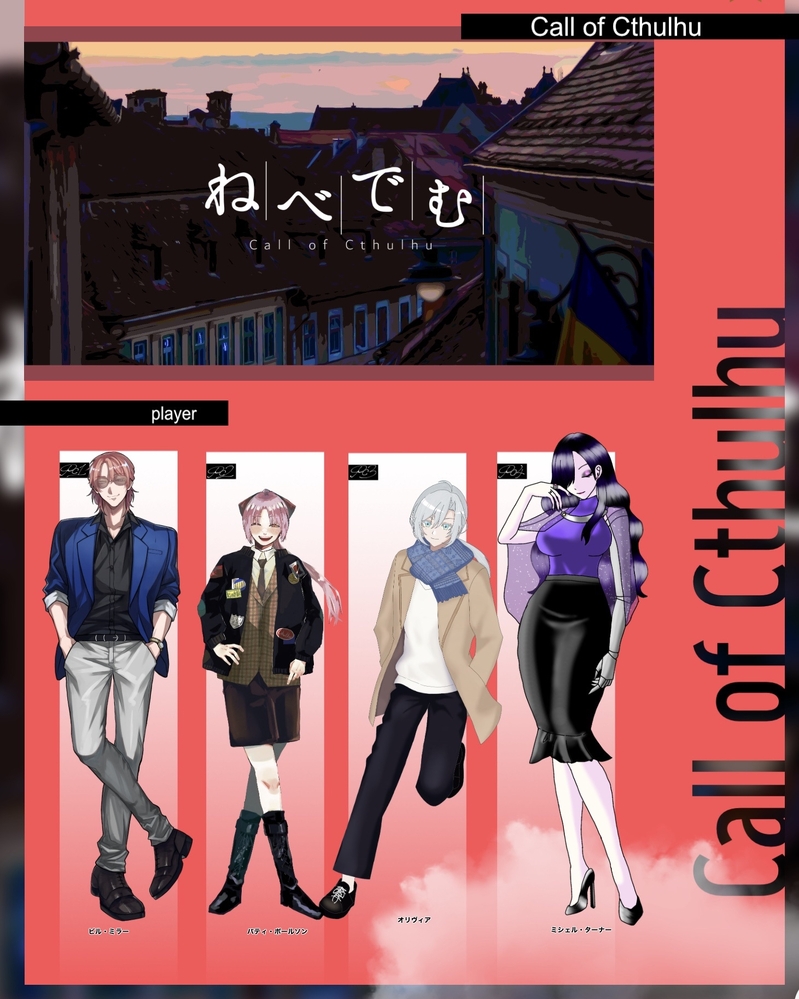 rya_anamu1105☆quiet followDOODLECoC ねべでむPC ウィリアム・ミラー/ふじきさん パティ・ポールソン/白咲いちかさん オリヴィア/もこさん ミシェル・ターナー/わい帰ってきたぞー!旅行からついに帰ってきました😊 Tap to full screen (size:1461x1826).Repost is prohibited Let's send reactions! freqpopularsnackothersPayment processing Replies from the creator Follow creator you care about!☆quiet follow rya_anamu1105DOODLECoC 今日もあなたの恋人が家で待っているKP ハクメンさんKPC 逢地 煌PC 天熾 綾END A 両生還リリリバ継続で...!めちゃくちゃ楽しかった〜❤🫶 rya_anamu1105DOODLECoC あいつが桜に攫われた!?KP なむKPC Elizaveta・ValovaPC 黒崎 大晴/ハクメンさんEND1-A面白かった〜🫶❤ふふふふいいのをみれました‼️ rya_anamu1105DOODLECoC ほしの小瓶KP なむKPC 白木 淵雷PC 黒木 凌/珈琲がむさんEND 空の星黒木さんと白木先生で金平糖作りに行ってもらいました‼️めちゃくちゃお友達して貰えててPLは嬉しー!!ってうちわ振ってました😊❤またお会いしたい!! rya_anamu1105DOODLECoC あいつが桜に攫われた!?KP なむKPC 安座間 アウラPC イクトス/珈琲がむさんEND1-Cずっと笑い転げてくれててKPも楽しかったですwwwwwww 2 rya_anamu1105DOODLECoC 絵画の騎士のうたKP 珈琲がむさんKPC イクトスPC 安座間 アウラ/なむEND 1ヲリル継続〜✨🫶楽しかった〜!!いつも通りのイクトスさんにもはや安心感すら覚えるアウラが面白かったですw🤣 rya_anamu1105DOODLECoC この先、巨頭オKP なむKPC 宵守 七生PC 小早川 了/しゅんさん無事生還!!!楽しかったですね✨🫶 recommended works m0f___DONEsukimaのコンテに出したやつです。 黎明~DOODLE自陣の片鱗です ネタバレありパスワード:OK 7 445_claricoDOODLE片鱗 現行未通過× ステータスが決まったので yuki_asami_MOURNINGCoC 「片鱗」HO2 殺人鬼 愁 (シュウ)▷▶︎立ち絵、差分、ディスプレイ、ヘッダー「 あしたもはれるといいね、みすみ!」 8 七都にみSPOILERvoid 完走済みの方ok【ネタバレ注意】動画に使うイラストの一部自陣HO1の方に送る印象的だったところ 3 ともらす@お仕事募集中INFOともらす/東京インソムニア/(C)アルパカコネクトエイプリルフールイベント「電脳戦潜アプリェーリ」におけるIF設定の「近衛・巧」(タクミ)さんを描かせていただきました!↓実際のイラストページはコチラからhttps://alpaca-connect.com/gallery/80861有難いことに!アルパカコネクトさんの審査を合格して、無事に活動を開始し……初めて発注を頂き、納品させていただいたものです✨中に襟の目立つ服を着ていらっしゃらないようだったので、ゴクリ……と思いつつ首回りを描写させていただきました😳気に入っていただけていたら幸いです☀️ご依頼ありがとうございました!【公開日】2023年4月 2 EmoDONEskebありがとうございました! 黒猫ソライムDONE【片鱗】 HO2 殺人鬼※血表現あり 7 salt_500SPOILER片鱗微ネタバレ ヘラヘラおじさんじゃなくて不器用おじさんだからこうだったかもしれねえ
