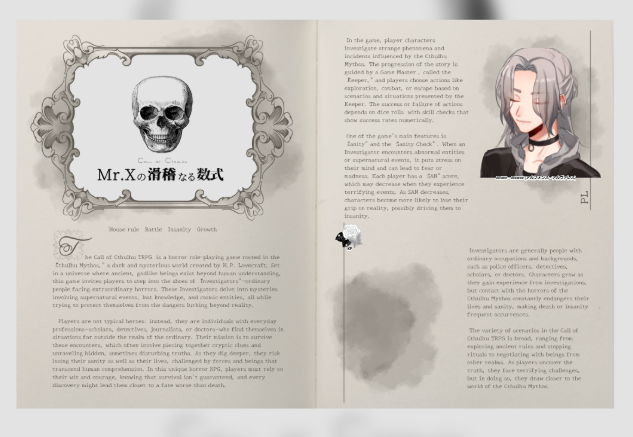 rya_anamu1105☆quiet followDOODLECoC Mr.Xの滑稽な数式KP リャーナムPC Alfonz・Alvarez/珈琲がむさんEND C-1僕の考えた最強の探索者!見せてもらいました👏💓めちゃくちゃ面白い男だったwww🤣 Tap to full screen (size:633x437).Repost is prohibited Let's send reactions! freqpopularsnackothersPayment processing Replies from the creator Follow creator you care about!☆quiet follow rya_anamu1105DOODLECoC Mr.Xの滑稽な数式KP リャーナムPC Alfonz・Alvarez/珈琲がむさんEND C-1僕の考えた最強の探索者!見せてもらいました👏💓めちゃくちゃ面白い男だったwww🤣 rya_anamu1105DOODLECoC「コンコン。」KP 珈琲がむさんPC 薔薇 旋/リャーナムEND 4某モンスターのごとく「行けっ!旋!!」と女性が苦手な陰キャをお出ししてきました👏珍しく年上らしい旋が見れましたね!! rya_anamu1105DOODLECoC 模倣的殺人の天使KP りゃーなむPC 仁宮時 夕影/珈琲がむさんEND 1 回したかったシナリオにお会いしたかった殺人鬼に来ていただきました〜🫶期待を裏切らない面白い男でした🤣👏 rya_anamu1105DOODLECoC さよなら、レンズフレアKP 珈琲がむさんKPC 扁豆 鏡時PC 榊原 ルフィナ/なむENDB-1様子のおかしい美女をやってきましたわ〜!✌️ 2 rya_anamu1105DOODLECoC 救世の神子は遠いセカイの声を聴くKP りゃーなむPC 夜霧 薔香/海月さん大伴景章ルート END2 2 rya_anamu1105DOODLECoC 救世の神子は遠いセカイの声を聴くKP りゃーなむPC 夜霧 薔香共通ルート完 recommended works irasutoyozakuraDONE女の子有償依頼イラスト。 7 @Sakaki_022DONE有償依頼でした💐✨ m0f___DONEsukimaのコンテに出したやつです。 EmoDONEskebでした 霜月椿🌸Skeb受付中DONE有償で描かせて頂いたイラスト纏め(ほぼSkeb)流血とかもあるのでワンクッション 11 ともらす@お仕事募集中INFOあろはろさんの歌ってみた用サムネイルイラストを描かせていただきました!いつにも増してキラキラなあろはろさんの目を見つめて夢中になっていただけたら嬉しいです💫↓低音で歌い上げる重厚なアイドルはコチラ!https://youtu.be/SSDcKGMpm34【モデル】あろはろ(@aroharodesu) 【担当】ラフ、線画、彩色、仕上げ【使用ソフト】CLIP STUDIO PAINT/Adobe illustrator【公開日】2023年5月 2 しおパンダSPOILER身内でやったTRPGシナリオ「片鱗」の発言まとめです EmoDONEskebでした EmoDONESkeb