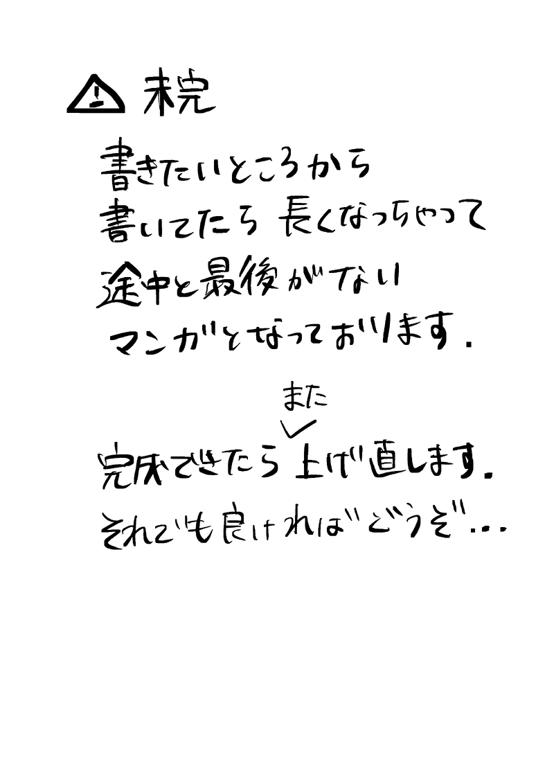 せきのポイピク☆quiet followPROGRESSブラネロWebオンリー「Bright Next Stage」参加作品(未完成)。完成できたらまた上げます。1ページだけ追加しました。(7/2 19:00) show all(+9 images) Tap to full screen (size:2508x3541).Repost is prohibited Let's send reactions! freqpopularsnackothersPayment processing Replies from the creator Follow creator you care about!☆quiet follow せきのポイピクDONE「そういうことにしてるつもり!14」開催おめでとうございます!!ブラネロが朝チュンするだけの頭のゆるい漫画です。完成するのに時間かかっちゃったのでパスワードはつけません。余談ですが、イベントやばいですね…ボスの孤独は誰にも癒せないのかもしれないけど、いつかブラッドリーとネロが折り合いをつけて暮らしていけますように…… 6 せきのポイピクDOODLE⚠️女体化小柄令嬢アサシンたすかる たすかりましたという絵 せきのポイピクPROGRESS2/22-23ブラネロWebオンリー「そういうことにしてるつもり!」13展示作品オンリー開催ありがとうございます!!フォル学のネロが猫拾う話(ブラッドリーは猫アレルギー)途中です。ごめんなさい!!!猫拾うとこまで行けてません。また続きできたら投稿します…!!16:08更新 3ページ追加しました!20:08更新 4ページ追加しました!2/27 22:55更新 6ページ追加しました! 17 せきのポイピクDOODLEブラネロえっちな状況じゃないのにえっちな効果が出てしまうやつ好き前後もないし本番もありません 続くかも 2 せきのポイピクDONEブラネロWebオンリー「そういうことにしてるつもり!」12 展示作品追記 パスワード外しました!ブのこと好きだけどなにも分かってないネと大切にしたいと思ってるブの短いマンガです。背景真っ白マンガですが賑やかしにでもなれば…! 8 せきのポイピクDOODLE脱いでるので一応ポイピクにあげます匂わせ程度のエロブラネロですパスワード:15↑ですか?yes/no