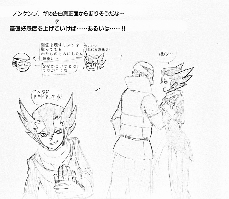 ノンケンブさん(好感度未達)、悪気なくギからの告白断ってしかもそのままの関係が続けられると純粋に思ってそう(偏見)というところから思いついたのですがただギの誘惑が描きたかっただけかもしれない。恋の駆け引き楽しんでけ〜