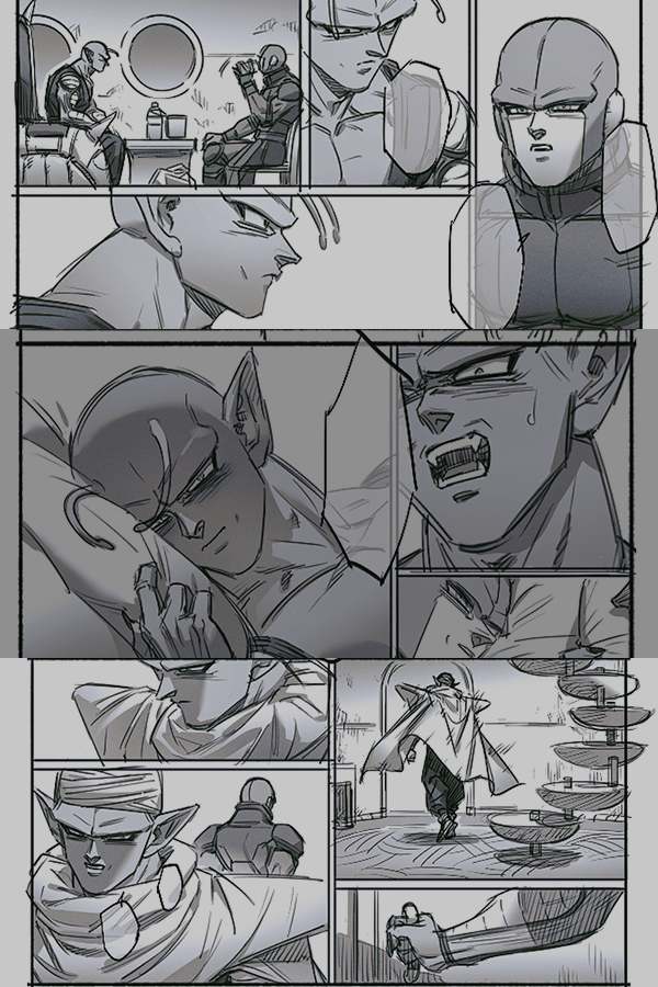 Some testing pages of my WIP Hit/Piccolo comic