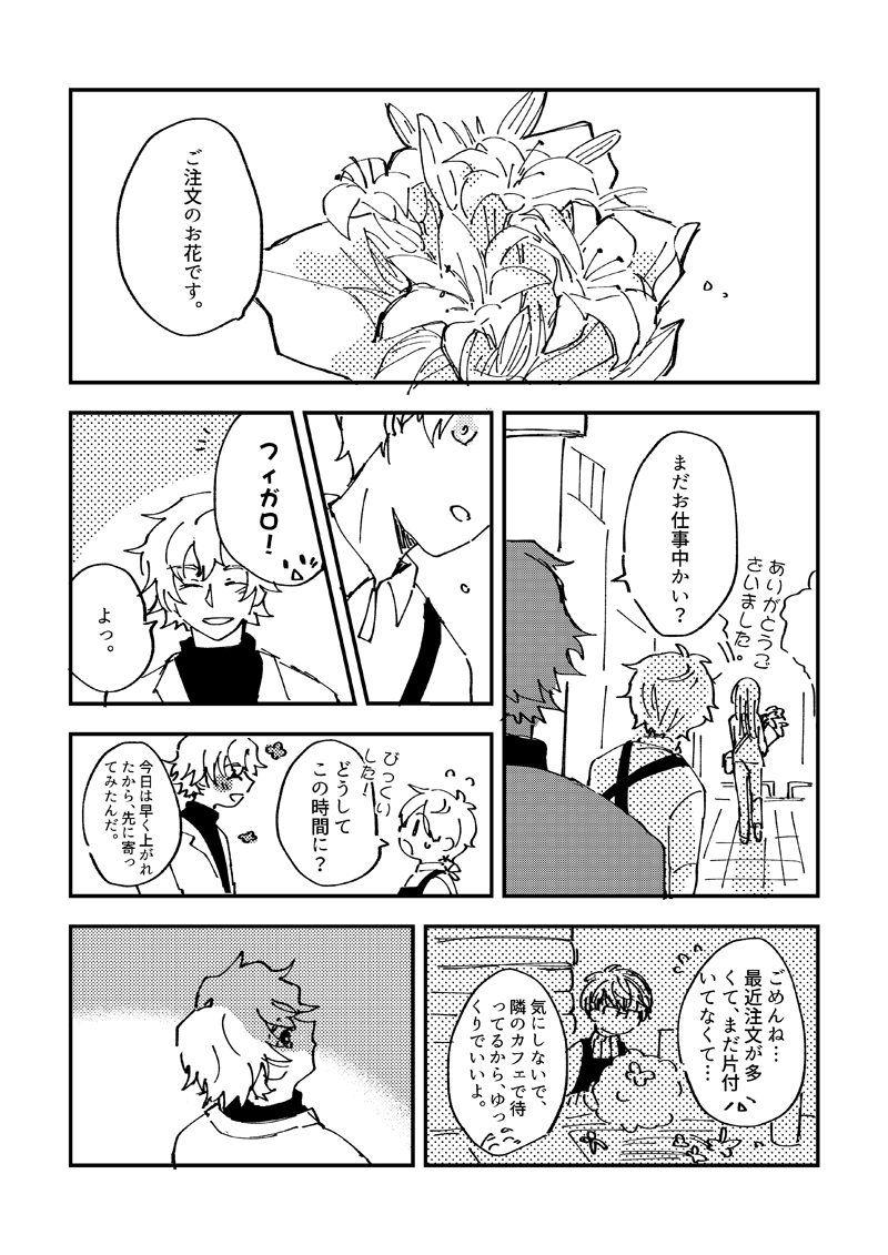 ソラ。☆quiet followMOURNING「星ふる夜に手をとって3」開催おめでとうございます!フィガ晶♂雰囲気漫画です。 show all(+6 images) Tap to full screen (size:800x1131).Repost is prohibited Let's send reactions! freqpopularsnackothersPayment processing Replies from the creator Follow creator you care about!☆quiet follow ソラ。MOURNING「星ふる夜に手をとって3」開催おめでとうございます!フィガ晶♂雰囲気漫画です。 7 ソラ。MOURNING「ひかる星々の名前を教えて4」開催おめでとうございます!2022/5/4に頒布したフィガ晶♂本を期間限定公開します。よろしくお願いします:) 30 ソラ。DOODLE「星が奏でる魔法のメロディ3」開催おめでとうございます! 2 ソラ。DONEフィガ晶♂Webオンリー『幾星霜と踊る夜』お疲れ様でした~!素敵なイベントを参加ができて本当に嬉しいかったです!展示漫画は晶くんは南の皆さんと一緒に絵を描く話です。 19 ソラ。DONE「ひかる星々の名前を教えて5」お疲れ様でした~!素敵なイベントを参加ができて本当に嬉しいかったです!主催者様本当にありがとうございました!ちびフィガロと晶くんの雰囲気漫画を展示します。捏造しかないなので、何でも許してくれる人向けです。よろしくお願いいたします~! 19 ソラ。DONE「ひかる星々の名前を教えて4」お疲れ様でした~!展示していた秋のフィガ晶♂漫画です。 5 recommended works manba_tiPAST初めて投稿したフィガ晶♂ 2 manba_tiPASTいろいろ残念なフィガ晶♂めっちゃ絶景見せてもらった。 ソラ。DONEおたまほ2お疲れ様でした!展示したフィガロ4月ホームボイスネタの漫画です。(フィガ晶♂) 8 MienhuaDONEフィガ晶♂2021年費加洛生日小人4格漫畫衍伸噗浪晶♂受連攤展示魔法晶創作題第一回 1056 MienhuaMOURNINGフィガ晶♂北海月光魔法趴卡片故事妄想 2 UkueDONE11/14【月よりのエトランゼ】展示作品です。PWはおしながきに貼っているリンク先に記載しています。自分の住む世界にフィガロが来てもまだ「好き」を素直に伝えられない晶♂と「好き」と言われていることに気づかないフィガロのお話。I love youは聞こえない→フィガロの話I love youは届かない→晶♂の話になっています。 1357 りう_DONE11/14逆トリオンリー「月よりのエトランゼ」で展示していた作品です。逆トリで晶くんの世界にやって来たフィガロと晶くんが買い物デートして二人でダーツをしています。ご都合主義なので、厄災がどうにかなって、二人はお互いの世界を行き来出来るようになっている…という想定です。※ちょっとだけフィガロ親愛ストのネタバレがあります。 5024 tamagobourodaneDOODLEお互いのチャンネルに日参してるVtuberのフィガ晶♂の話※Vtuberパロ注意/リバの気配というか左右曖昧注意なりゆきで弱小センシティブめ企業Vやってる晶くんが、厄介リスナーの「がるしあさん」に悩まされつつ「フィガロちゃん」の配信に通う話文字通りほんとに悪ふざけの産物です 6749 春園ひなたDOODLE晶くんオンリー「ひかる星々の名前を教えて4」新作展示でした。元の世界に戻った晶くん。あの世界での恋人の顔も名前も思い出せないのに、身体は覚えているので一人でしても物足りなくて……。いつもよりクセが強いです。軽度のネタバレOKで、含む要素・含まない要素について事前に確認したい方は以下URLへ。https://poipiku.com/2065031/7631485.html 11655