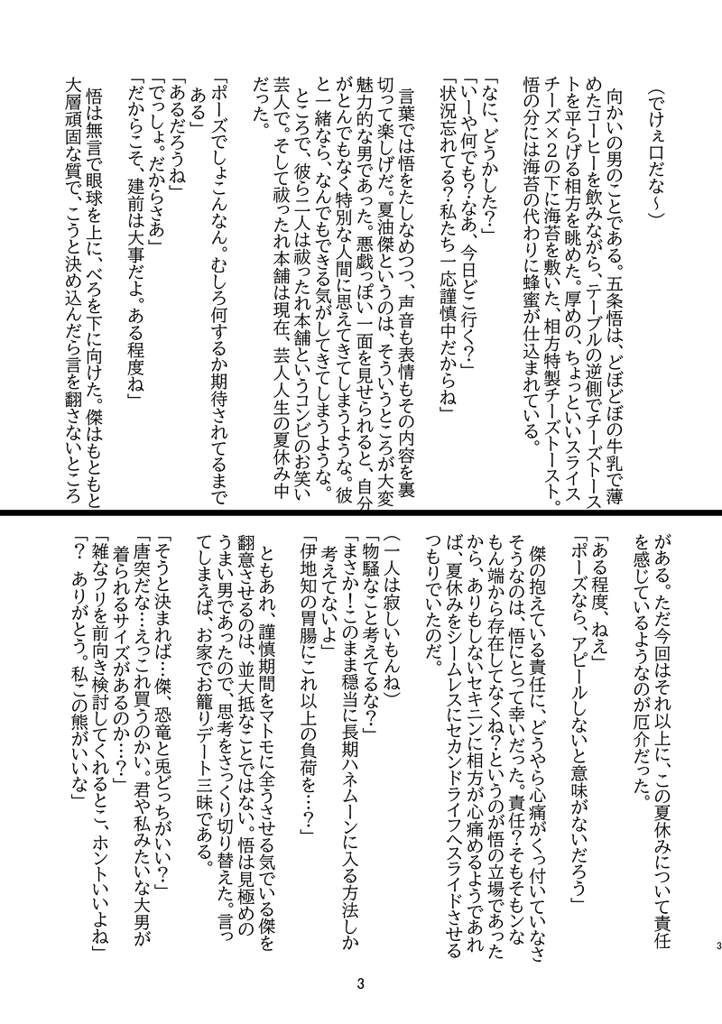5k01kaze72☆quiet followDOODLE2025/5/3 のイベントでの無配小話です。はらほん五夏がベランダでごはん食べたりするだけのお話。 show all(+3 images) Tap to full screen (size:1748x2480).Repost is prohibited Let's send reactions! freqpopularsnackothersPayment processing Replies from the creator Follow creator you care about!☆quiet follow 5k01kaze72DOODLE2025/5/3 のイベントでの無配小話です。はらほん五夏がベランダでごはん食べたりするだけのお話。 4 5k01kaze72DOODLE2025/5/3 のイベントで配布していた五夏♀ペーパーです 2 5k01kaze72DONE今夜帳の中で【5】で展示していた平和な師祖です。ご覧いただいた方、拍手やコメント下さった方、本当にありがとうございました。 2 5k01kaze72DOODLEさあ果たして放送開始までに間に合うのか。経験の有無に関する高専五夏小ネタです。 5k01kaze72DOODLEすぐる♀のおっぱいこういう感じで垂れてほしいなというらくがきです 5k01kaze72DONE帳の中の誕生日会展示離反回避教祖if(新刊予定冒頭5p)おしながきのパスワードを入力してください 5