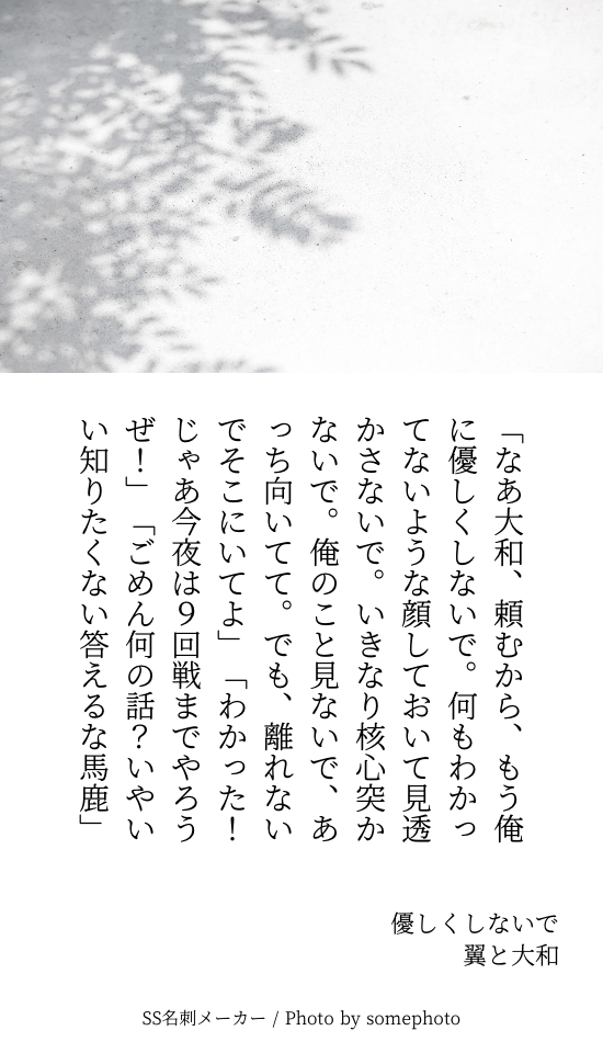 さいか☆quiet followMOURNING貴方はやまつばで『優しくしないで』をお題にして140文字SSを書いてください。 ##バンヤロ Tap to full screen (size:550x950).Repost is prohibited Let's send reactions! freqpopularsnackothersPayment processing Replies from the creator Follow creator you care about!☆quiet follow さいかMOURNING貴方はモモとユキで【 ××× 】をお題にして140字SSを書いてください。という感じに診断メーカーにもらったお題でリヴァライロスと戦ってきた記録です。お題提供元:https://shindanmaker.com/787893 7 さいかMOURNING斗真とルシカ/斗真と京極早く配信観た〜い 1125 さいかMAIKING「指の間から君を見ていた。」という文で書き出し、途中、視線を落として「さようなら」と言う大和と翼のお話。#shindanmaker #二人のお話https://shindanmaker.com/991414 382 さいかMOURNING140字SS 5 さいかMOURNING翼と宗介/10年後 680 さいかMOURNINGあなたはやまつばで【逃さない / むちゃくちゃに甘いのください】をお題にして140字SSを書いてください。 https://shindanmaker.com/780366 2 recommended works kinakoro0141DOODLE新衣装すき………… ユウニDOODLE軽い気持ちでプロセカ始めたらうっかりわんだほいになってしまったヤツ類司かわいいですね…絵柄、原作絵がとってもかわいいので上手いこと融合出来ないか挑戦したけど諦めたので色々迷子ですw 6 lieさんDONEニーゴミクちゃんの線画 もち丸PROGRESS心が折れそう もうこれ本塗りでよくない?カラーラフってラフとか下描きの段階でやるものだよね?なんでペン入れ終わってからこんなことやってんの?バカなの??? kanpei_103DOODLEこの間のつかさんとっても公式と違ったので直したもの!(類君も添えて) arincoDOODLE彰人のこの髪型えっちすぎる服の模様がよく分からなすぎて諦めました🤦♀️少し明るくしたので上げ直し nukegara_thirdDOODLEプロセカ 奏とニーゴミク うさぎぱんけーきDOODLEニーゴイベ期間多分ほとんど絵が描けないのでラフです 2 ふぇせDONEミクちゃん虹色持ってきてくれ