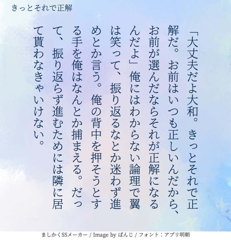 貴方はやまつばで『きっとそれで正解』をお題にして140文字SSを書いてください。