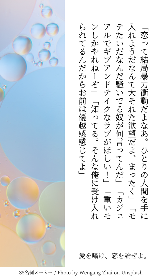貴方は宗翼で『愛を囁け、恋を論ぜよ。』をお題にして140文字SSを書いてください。
