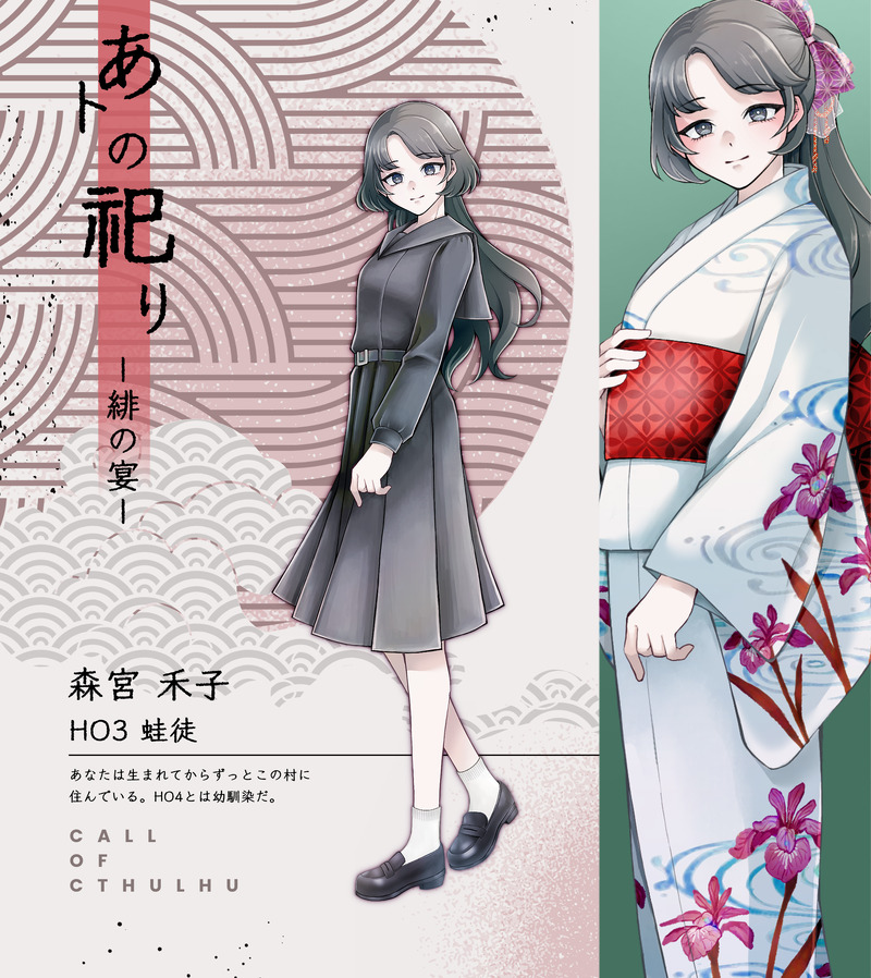 tsukiko☆quiet followDONE『あトの祀りー緋の宴ー』HO3 蛙徒[森宮 禾子(もりみや わこ)]お菓子作りが趣味の控えめ女子。幼馴染となら他の人より気楽に話せる。 #クトゥルフ神話TRPG cthulhuMythosTrpg #COC #探索者 explorers #立ち絵 standingPicture ##立ち絵 show all(+11 images) Tap to full screen (size:2000x2245).Repost is prohibited Let's send reactions! freqpopularsnackothersPayment processing Replies from the creator Follow creator you care about!☆quiet follow tsukikoDONE『ピリオド・アズール』HO2[御影 肖砺(みかげ にれい)]特技:営業スマイル 5 tsukikoDONE『悪辣』HO2 薬物売人[芥子原 火摘(けしはら ほづみ)]飽き性で面倒くさがり。他人はだいたい馬鹿にしてる。棒付きキャンディが好き。 5 tsukikoDOODLECoC『レゾンデートル』NPC/葛南東、渡刈世那 2 tsukikoSPOILERCoC『レゾンデートル』現行未通過NG※探索者イメージカクテルの感想です※HO2側メインですが勝手にHO1側の感想もあり※対応NPCのイメカクあり(あくまで自陣の解釈に基づいたものです) 4 tsukikoDOODLEバニーの日タグでバニーにされた自探索者たち 5 tsukikoDOODLEXのタグで描いた自探索者まとめ①仮装パネルトラップ②髪型チェンジ③性転換④猫の日 4 related works amadare_2DONE立ち絵まとめ 37 いちおかしDONE織春 結(22) 新米ホスト立ち絵差分並べると、アハ体験みが強すぎて笑ってしまう。 ちゃんすけDONEエマニュエル・・・・・・・(山羊歌各話ネタバレ) 25 いちおかしDONE白骨幸子(小学生)ぼくみご参加したぞー!動物が大好きな女の子。 lala_kuronoDONECoC【ゆれるフリルにくちづけて】ロトカ・ヴォルテラの愛堕討ち継続:大賀美 唯2枚目:表情差分まとめ※チョット受っぽい差分もある(Pass:ok) 2 ちゃんすけDONE鳴海 朔 26歳 バーテンダー 8 ちゃんすけDONE壬弥川 恭介(みやがわ・きょうすけ) 32歳メカニック。不真面目の擬人化。ノリが軽く飄々とした性格。普段から刑事らしからぬ格好をしているので上司から別部屋で指導が入ったり入らなかったりするけど結局聞いてない。愛用のタバコはピース。赤面差分多いのはサルーテのせいです。 23 ちゃんすけDONEしぶき~~~~~の立ち絵 49_trpgDONEてみふろHO4の差分を作ってみたよ 現行未履修× パスは49
