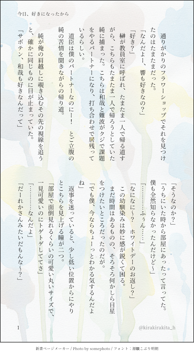 〔今日、好きになったから〕(きょかず)