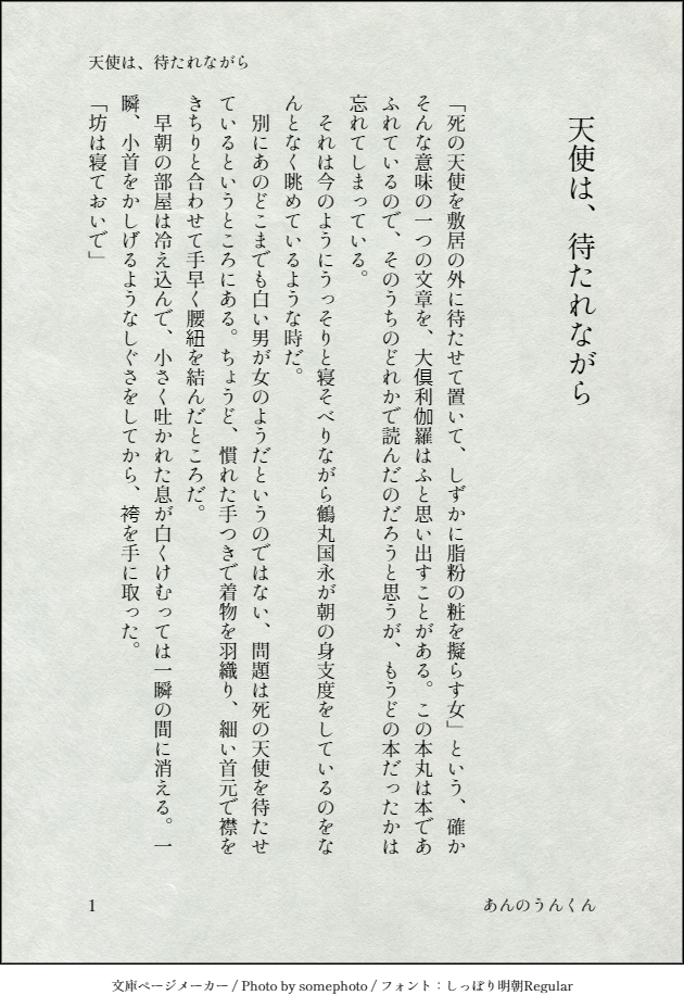 unknowntb140☆quiet followDONEくりつるまつりのビッグウェーブに載ってみたいと思ったなどと申しており。なお次郎ちゃんを何とかしてカットインさせたのがこだわりです。伽羅ちゃんの読んだ本は森鴎外です。 show all(+2 images) Tap to full screen (size:630x928).Repost is prohibited Let's send reactions! freqpopularsnackothersPayment processing Replies from the creator Follow creator you care about!☆quiet follow unknowntb140DONE刀ミュ時空、ばんりょ前提の鶴丸と大俱利伽羅のすこしふしぎ話。くりつるか?そうか? 3 unknowntb140DONE刀ミュ準拠、くじゅのあの「蝦夷の歌」に参加している大包平と水心子はどういう設定なんだろう…と思ったらなんかにゃんちょぎが生えた?そうか?何もわからない。 4 unknowntb140DONEなんかついかっとなって書いた。刀ミュ準拠の鶴丸さんについてお話する火車切君と大倶利伽羅君ですが、まあ独自設定っていうか独自解釈があります。あと花歴で次期花当番になったコンビが話だけ出てくる。香水売り場の乾いたテスター程度のくりつるのかほりが…しませんか?そうか…… 4 unknowntb140DONEお友達から結城のぎねねレプリカ展示のアナウンスで秀康様大好きだったって聞いたから(言い訳) 3 unknowntb140DONE刀ミュ花影準拠。あの妙に波長が合うというか仕事と話が早そうな長谷部と長義ペアです。あの本丸には次郎ちゃんがいます!という気持ちを込めてカットインさせています。書けば出るっていうし(意味が違う) 8 unknowntb140DONEくりつるまつりのビッグウェーブに載ってみたいと思ったなどと申しており。なお次郎ちゃんを何とかしてカットインさせたのがこだわりです。伽羅ちゃんの読んだ本は森鴎外です。 3