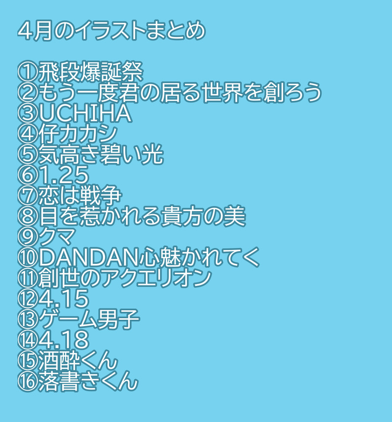 おじょう❸☆quiet followPAST2024/4月 まとめ #NARUTO #飛段 Hidan #トビ invernessCape #うちはオビト #はたけカカシ scarecrow #アナログイラスト analogIllustration #恋は戦争 loveIsWar #創作 creation #創作男子 creativeMan #DANDAN心魅かれてく #シャーペン画 mechanicalDrawing #創世のアクエリオン #オリキャラ original characters #絵 show all(+16 images) Tap to full screen (size:1240x1337).Repost is prohibited Let's send reactions! freqpopularsnackothersPayment processing Replies from the creator Follow creator you care about!☆quiet follow おじょう❸PAST2024/7月 まとめ 14 おじょう❸PAST2024/6月 まとめ 5 おじょう❸PAST2024/5月 まとめ 11 おじょう❸PAST2024/4月 まとめ 17 おじょう❸PAST2024/3月 まとめ 9 おじょう❸PAST2024/2月 まとめ 12 related works ねねこDONEテスト的なアレ的なアレ特に深い意味はない#創作 みなせDOODLEお試し登録です。いい感じなら続けて利用したいと思います。 はしくんMAIKING初めてiPad Proで絵を試し書きまだ慣れないし疲れたので途中放置…。 小雀黎DONE結局青くしました。青が似合う。簡単な塗りにしてみたけど、合う合わないは分からない…… 若松ハルキ/春樹DOODLE #アナログ #創作ネズミさんとネズミちゃん。 宙兎帆羽PASTヘッダーのヤツ #創作 #オリキャラ _caccotojiDONE🌿 かえでDOODLE amejiyaPAST創作曲ネタ絵 15 recommended works 🍨🍊MOURNINGボツ絵のうちの子 2 晴木ヨウキPASTセリアの和の色水彩絵の具だけで塗ったやつ bbex09DOODLE産まれたときから教団のシンボルとして奉られている白痴の男の子 五月くぅDOODLE 佐市プイ😈DONE Indigo030DOODLE 5 あおーたすDOODLE 美那子こと慧MOURNINGオリキャラ。一応イメ画…?かな。 riard23DOODLEの、筋肉が大好きなんだよ