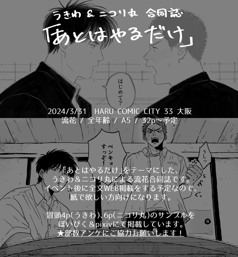 「あとはやるだけ」をテーマにした、うきわ&ニコリ丸による流花合同誌です。