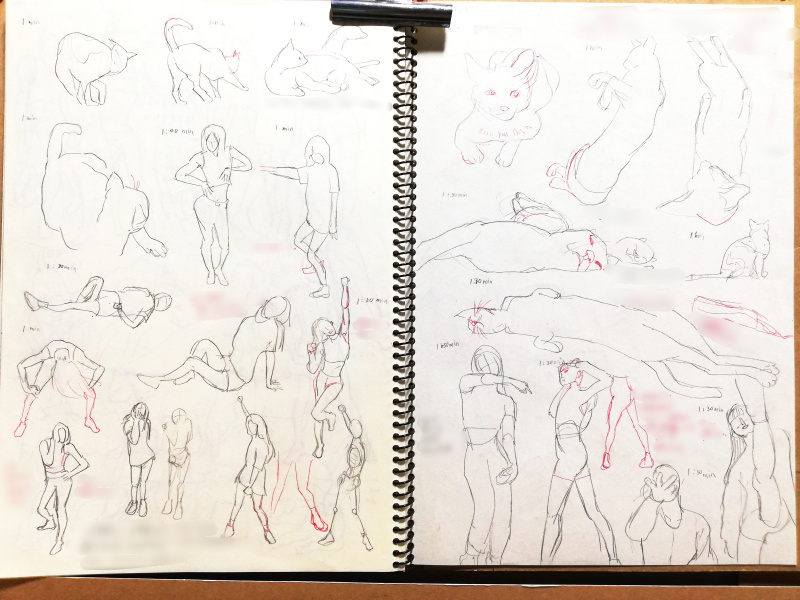 🍀動きを描く。目を離す。意識しないと部分に目がいく。さらに難度がry