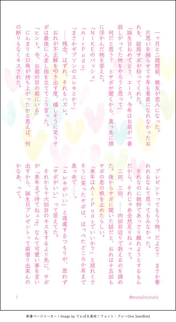 @mela2ncholic2☆quiet followPASTバレンタインのエーサボ #エーサボ servo show all(+6 images) Tap to full screen (size:618x1132).Repost is prohibited Let's send reactions! freqpopularsnackothersPayment processing Replies from the creator Follow creator you care about!☆quiet follow @mela2ncholic2DONE冬のえーさぼ。生存if。ワンライ企画向けに書いてましたが間に合わなかってので展示します!Reもゆふた開催おめでとうございます㊗️ 12 @mela2ncholic2PASTサボ誕/エーサボ生存if 6 @mela2ncholic2PAST甘めのエーサボ2本立て現パロ 10 @mela2ncholic2PASTバレンタインのエーサボ 7 @mela2ncholic2PAST手相占いとエーサボ現パロ 4 @mela2ncholic2PAST配達員×偏食エーサボ/現パロ 8 related works プロテインDONE3/18エーサボwebオンリー【夜の数だけまた来るよ!】展示用漫画 12 xxmdr_pxxDONEエーサボ🔥🎩密室おせっせシチュ好きなんですよね〜 xxmdr_pxxDONEエーサボ🔥🎩ワンマガネタです xxmdr_pxxDONEエーサボ🔥🎩サボ宅を訪ねてきたモブ「サボさ〜ん?いらっしゃいませんか〜?おかしいなぁ、靴はあるのにな……」 むにおDOODLEついログ 9 xxmdr_pxxDONEエーサボ🔥🎩 @mela2ncholic2PAST雨デートするエーサボ🔥🎩生存if/七夕 4 むにおDOODLE 7 hamaki8ADOODLEらくがき※スライムまみれサボくんセリフで呼んでるだけでエースはいません 3