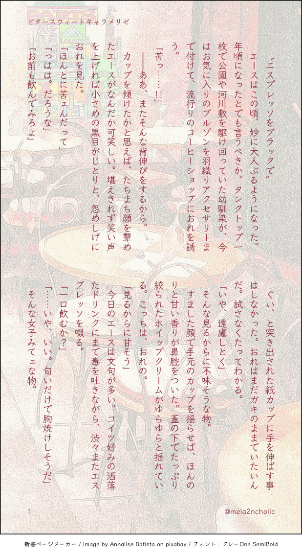 @mela2ncholic2☆quiet followPAST甘めのエーサボ2本立て現パロ show all(+9 images) Tap to full screen (size:618x1132).Repost is prohibited Let's send reactions! freqpopularsnackothersPayment processing Replies from the creator Follow creator you care about!☆quiet follow @mela2ncholic2DONE冬のえーさぼ。生存if。ワンライ企画向けに書いてましたが間に合わなかってので展示します!Reもゆふた開催おめでとうございます㊗️ 12 @mela2ncholic2PASTサボ誕/エーサボ生存if 6 @mela2ncholic2PAST甘めのエーサボ2本立て現パロ 10 @mela2ncholic2PASTバレンタインのエーサボ 7 @mela2ncholic2PAST手相占いとエーサボ現パロ 4 @mela2ncholic2PAST配達員×偏食エーサボ/現パロ 8