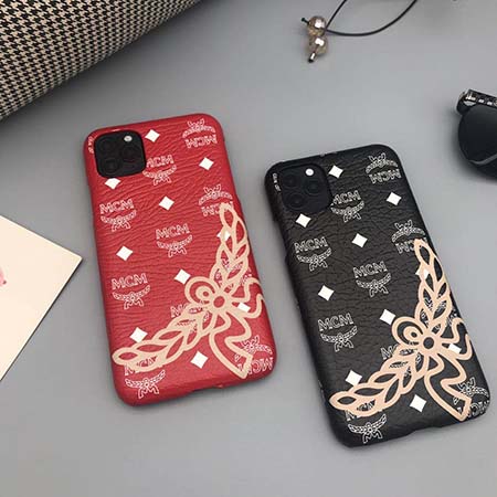 安い エムシーエム iphone15 携帯カバー 革製 赤黒 かっこいい MCM ロゴ アイフォーン15Pro ケース 人気 芸能人-Cutezaka