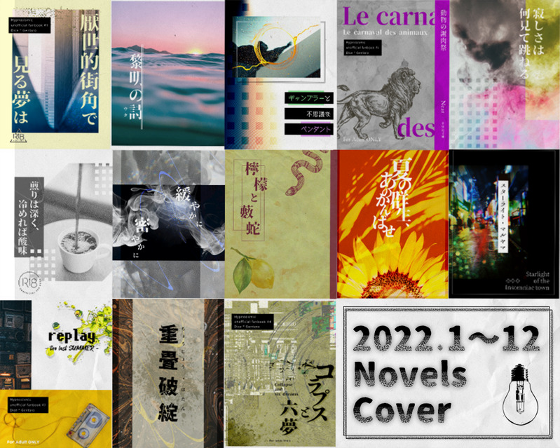 ◆2022年1~12月 作成した小説表紙の記録。web掲載、オフ本含む。支部でお借りしたフリー素材を使用したものは除く。