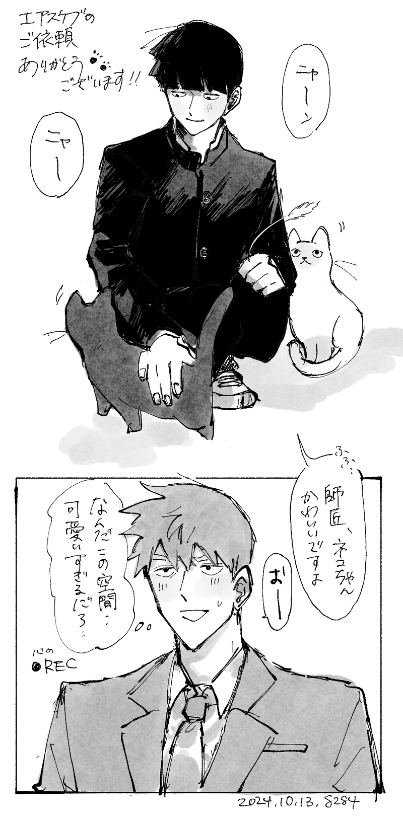 8284☆quiet followDONEエアスケブのご依頼ありがとうございます!💛🖤「モブくんとねこが仲良く遊んでいる姿に内心めちゃくちゃかわいい!!となっている師匠」ということで、ありそう~!かわいい~!!!となりながら描かせていただきました~!😂 Tap to full screen (size:1000x2042).Repost is prohibited Let's send reactions! freqpopularsnackothersPayment processing Replies from the creator Follow creator you care about!☆quiet follow 8284DONEエアスケブのご依頼ありがとうございます💛🖤お待たせいたしました~!「霊モブ夫婦のお子様ありの仲良し親子イラスト」です~!いやーーーファミリー大好きなので描かせて頂けてとっても嬉しかったです🥺✨ありがとうございました! 8284DONEエアスケブのご依頼ありがとうございます!💛🖤お待たせいたしました…!「いちゃいちゃキスをしている霊モブ」です~!最高~(;o;)!あわあわしてるモブ君も勿論可愛いんですが、ちょっと慣れ始めたお兄ちゃん感のあるのもイイ…と思い描いてみました!ちなみに霊幻の伺いの立て方、「キスしていい?」か「ちゅーしていい?」なのかで超悩みました…🥺 8284DONEエアスケブのご依頼ありがとうございます!💛🖤「モブくんとねこが仲良く遊んでいる姿に内心めちゃくちゃかわいい!!となっている師匠」ということで、ありそう~!かわいい~!!!となりながら描かせていただきました~!😂 8284DONEChoose me,Mob!開催おめでとうございます!開催にあたり、過去に頒布した作品のおまけ漫画を描き下ろした内容をイベント開催期間中限定で公開させて頂きます。少しでも楽しんでいただけたら幸いです!※公開終了いたしました!ありがとうございました 61 8284DONEChoose me,Mob!2 開催おめでとうございます!開催にあたり、新刊(未確定)準備号として開催期間中限定で公開させて頂きます。少しでも楽しんで頂けますと幸いです!※公開終了いたしました!ありがとうございました 17 8284DONE大変お待たせ致しました…!!!!エアスケブのご依頼ありがとうございます😭😭🙏‼‼‼ お題「うたかたのうたの師弟で キスしたいけどちょっともったいなくてなかなかキスできない師匠、焦らしてるけど、最終的にはモブ君が蕩けちゃうようなキスをしちゃう師弟」ということで、ご希望に添えておりますでしょうか…すっごく天才お題かつうたかたの2人で頂けるなんて光栄ですッ…😭🙏✨無言のキスってエモくていいな… recommended works はむこMOURNING大捏造るじゅえおこらないでほしい KyugetsuDONEサッカー部 蹴戸 昌 2 www_spla3DOODLE調子がすこぶる悪くてしょんぼり halluDOODLEマッサージして欲しいメリアちゃん raccoondog_cuteDOODLEガキ詰め合わせ 3 YKNDOODLE獅子新🦁🐰 ツバキDOODLE【聖剣伝説3:モンスターらくがき・第4週分】毎日らくがき できるかな 画像2枚目から個別のアップ絵になります※SFC版のイラスト&ドット絵を参考にしているので、リメイク版のデザインとは異なる部分があると思います(2024年)※※第3週分(12.15〜12.21アップ分)→https://poipiku.com/747577/11191411.html 8 fujiDOODLEこれがかいしゅう流姫抱っこ! __migiri118DOODLEとーじょー、えろいね、とろとろだね