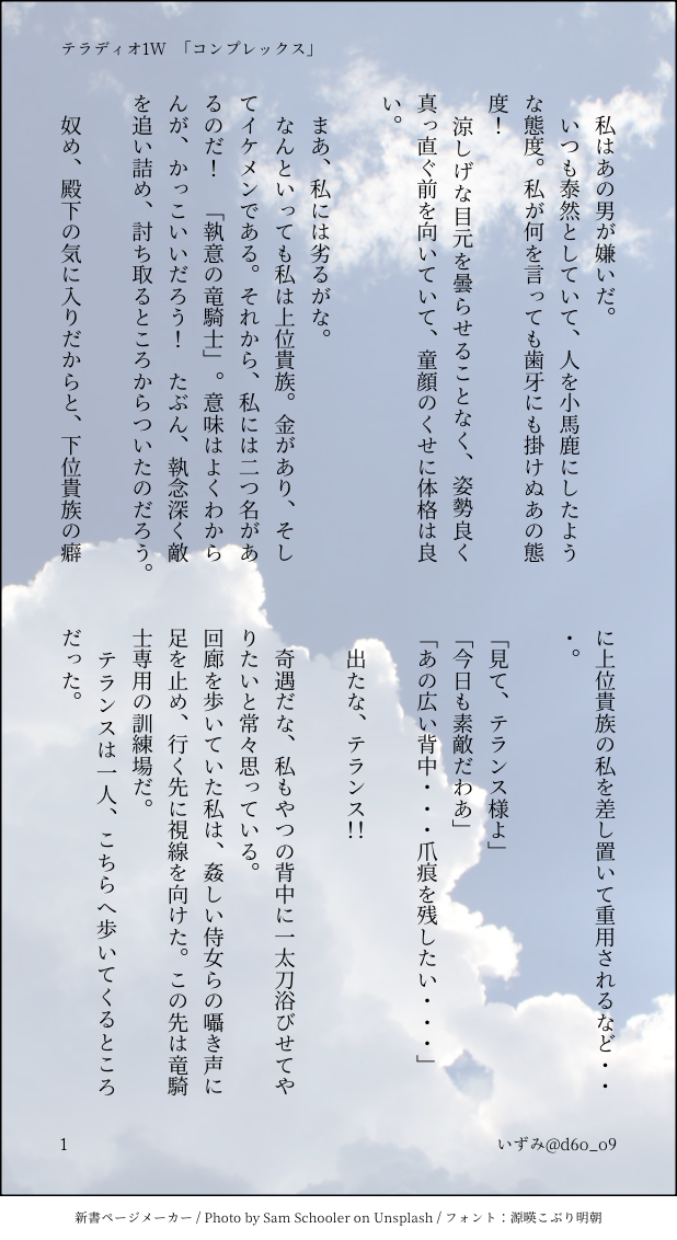 いずみ☆quiet followPASTテラディオと執意の竜騎士その1ポイピクを試してみようと。何度も再放送すみませんね😅 #テラディオ #執意の竜騎士 show all(+5 images) Tap to full screen (size:618x1132).Repost is prohibited Let's send reactions! freqpopularsnackothersPayment processing Replies from the creator Follow creator you care about!☆quiet follow いずみTRAINING先程投稿した「ギャップ萌えするディオン様」テラディオの画像版です。 5 いずみDOODLE息抜きに書いたテラディオ小ネタです。ギャップ萌えするディオン様 1588 いずみPROGRESSテラディオ本作ろうと思って・・・なかなか進まないので😭ケツ叩きの進捗晒します・・・ 2 いずみPASTテラディオ 学パロ 「幼馴染と両想いになりたいんだが」#4 8 いずみPASTテラディオ 学パロ「幼馴染と両想いになりたいんだが」#3です。 7 いずみPASTテラディオ 学パロ「幼馴染と両想いになりたいんだが」#2です。 9 related works いずみPASTテラディオと執意の竜騎士その1ポイピクを試してみようと。何度も再放送すみませんね😅 6 recommended works よしだDOODLEカラオケ 苔@kokeampkDOODLE学パロなトワブレです。 苔@kokeampkDOODLE学パロでトワブレです 苔@kokeampkDOODLEトワブレ前提な学パロです 苔@kokeampkDOODLEトワブレで学パロです。 2 水野しぶきDOODLEミスオエ♀の当て馬にされるモブ♂ 8 はくろうPAST2019~2020年くらいに うちよそで学園パロ漫画を描いていました。今でも話題にして頂けるほど好評でしたので、その時のお気に入りの話を再掲しておきます!⚠️同時仲良くして頂いていたフォロワーのCPも普通に登場するので、「夢女子」さんの存在を認識している方向けになると思いますm(_ _)m 23 musubishiratakiDONEアシュジュオちゃんかぶとあわせ………… aihara701SPOILER16で刺された幼馴染主従公式カップルテデ幸せになってくれ、頼む、頼む……。(クリア済みの呻き声)
