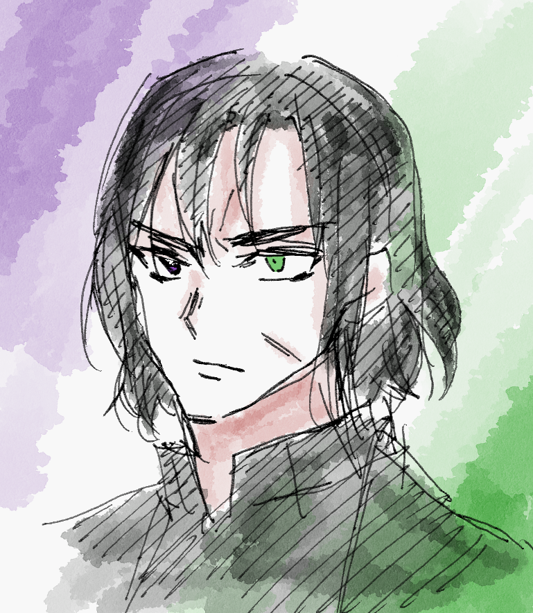 右目紫、左目緑。