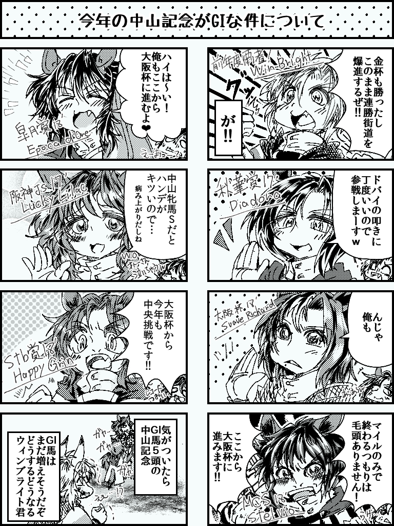 こじゃけさん@fubu51☆quiet followPASTウインブライトが重賞勝ち数大台に大手ということで今年の中山記念前にラッキー&エポカを書きたいという理由だけで書いた駄漫画をぽいぽいしておきますねー。個人的にハッピーグリンくんのデザインがお気に入り(´∀`*) <RT #今日の競走馬擬人化らくがき Tap to full screen (size:768x1024).Repost is prohibited Let's send reactions! freqpopularsnackothersPayment processing Replies from the creator Follow creator you care about!☆quiet follow こじゃけさん@fubu51DOODLEさぁ、うごくかな? こじゃけさん@fubu51DOODLEアイコンにしたくて 栗毛ちゃん。 こじゃけさん@fubu51DOODLEララ?ララララ? こじゃけさん@fubu51PAST昔の落書きにメイショウオニユリちゃんの当代絵があったのでさらし。シュガハさんの優秀さがよくわかるw こじゃけさん@fubu51DOODLEランドアステ嬢 前髪を大胆にみつあみにしてたのが素敵だったので こじゃけさん@fubu51DOODLEでっかいのとちっちゃいの related works こじゃけさん@fubu51DONE5連覇おめでとー こじゃけさん@fubu51DONE今年の桜花賞馬 これで完成らしい。 こじゃけさん@fubu51REHABILIらくがきかき。色々模索中。 こじゃけさん@fubu51DOODLEメロれんれん(*˘︶˘*).。.:*♡ こじゃけさん@fubu51DOODLE左足が歪だぁorz こじゃけさん@fubu51BLANKらくがきがき誘導馬の馬着のデザインはいつも迷います…orz こじゃけさん@fubu51DONE完全に2強状態でしたねぇ。 こじゃけさん@fubu51DONE今更だけどラッキーエリ女優勝おめでとう!(色塗りまでたどり着けませんでしたorz) こじゃけさん@fubu51DOODLEYEEEEEEE!!