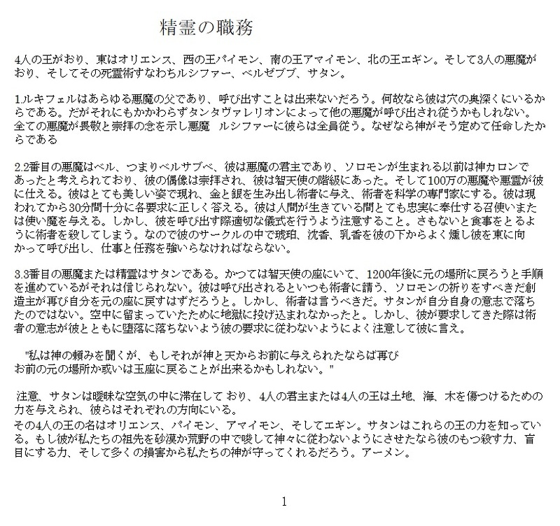 ヨハン・ヴァイヤーが悪魔の偽王国を執筆する際に参考にした1260年代のラテン語の本、精霊と職務の書(Liber Officiorum spirituum)を英語に訳した写本を日本語にしてみました。