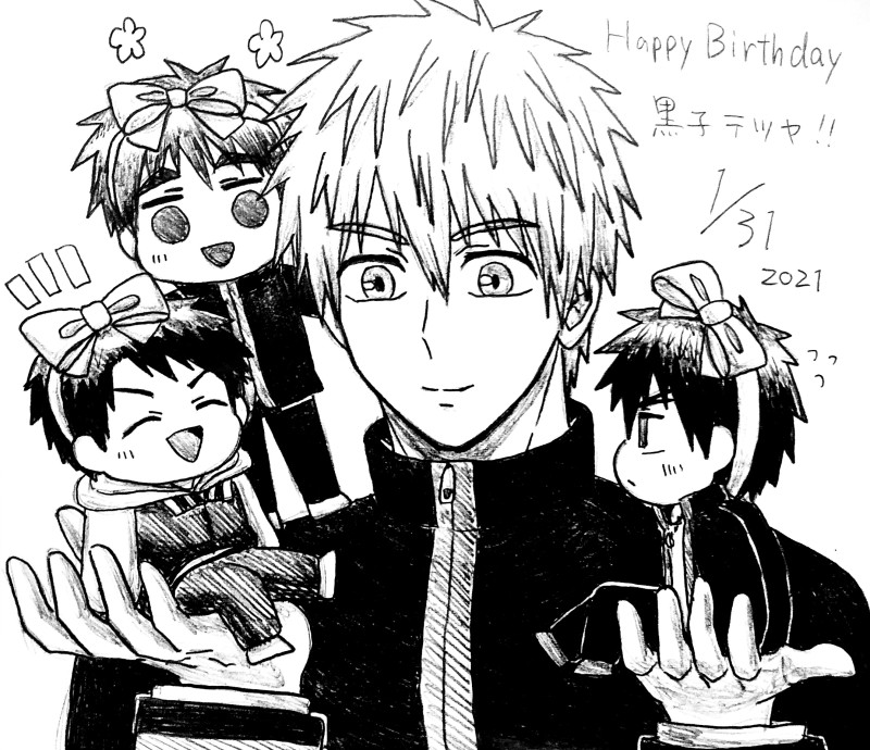 黒子誕生日おめでとう👏🎉🎁🎂🎊🏀🖤🥤プレゼントになる火神と木吉と荻原くん※黒火と黒木と黒荻