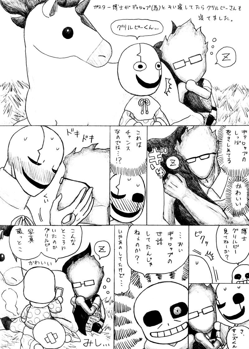 ガスター博士がギャロップと添い寝をしていたらグリルビーさんも寝てました🐎👻🔥💤※ガスグリとサングリ(gastby/sansby)