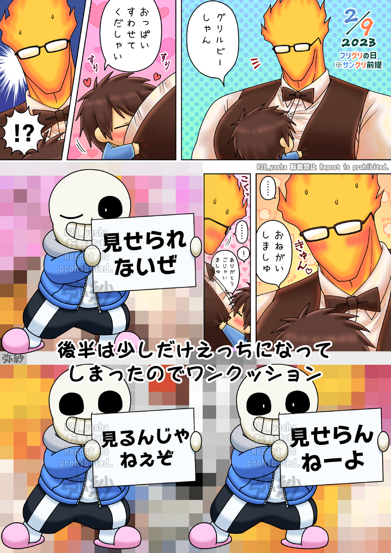 勹"リノレ匕"一さんの雄っぱいが吸いたいフリス勹のフリグリの日の漫画※サングリ前提(frillby/sansby)