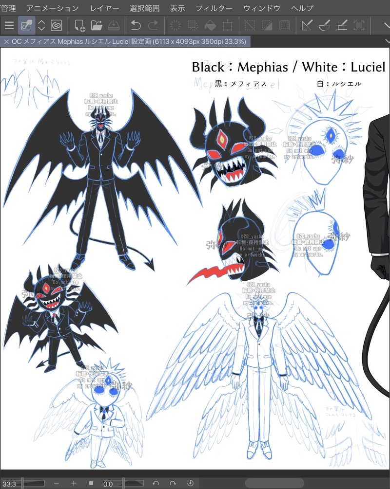創作OC メフィアス/ルシエル(Mephias/Luciel) 覚醒ver 設定画 進捗(wip)