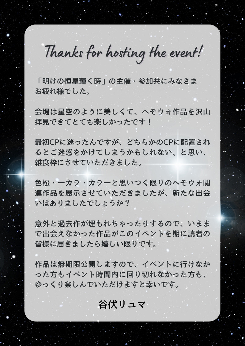 リスイン希望の旨をリプライして頂きますようよろしくお願いします。