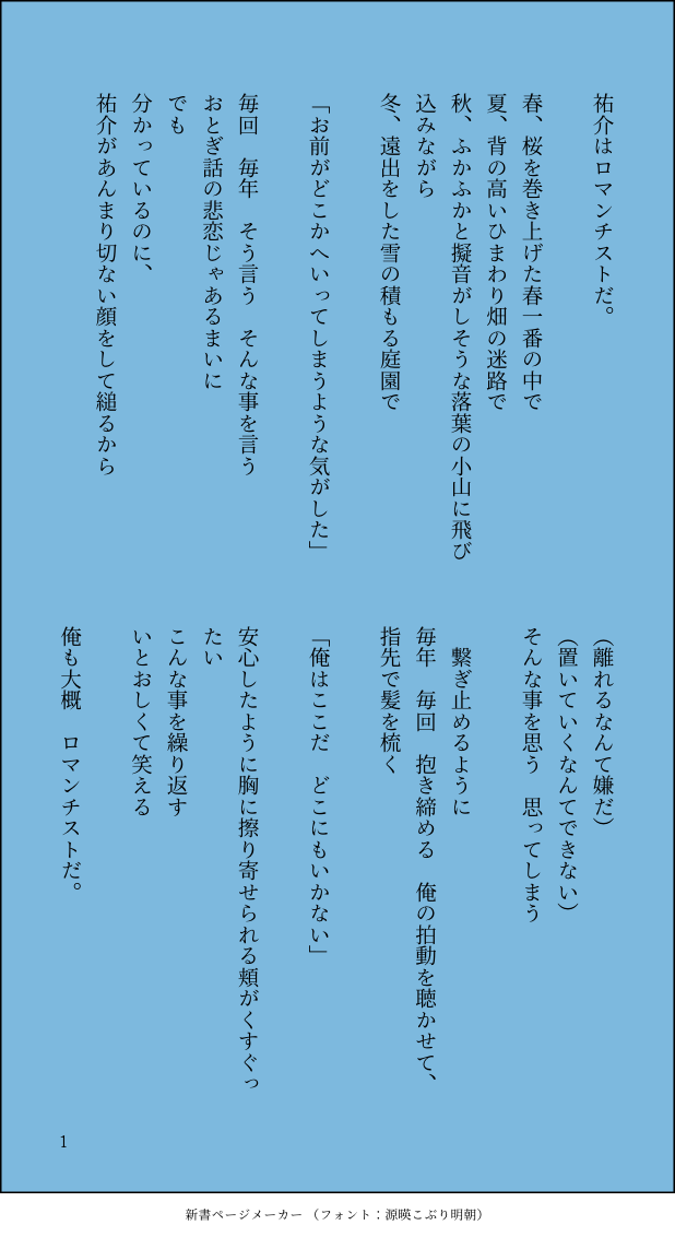 ものこ☆quiet followMEMO Tap to full screen (size:618x1132).Repost is prohibited Let's send reactions! freqpopularsnackothersPayment processing Replies from the creator Follow creator you care about!☆quiet follow ものこDOODLE 2 ものこDOODLE ものこMEMO 6 ものこDOODLE 2 ものこDOODLE ものこDOODLE recommended works ものこPASTおそろいのアレ可愛かった ものこDONE肉球にハマった祐介 ものこDONEつづき。 肉球代理(?)にハマり続けている祐介 ものこDONE待ち合わせ ものこDONE起きてる間はそうでもなくても寝てる時とか無意識下で子供みたいな甘え方してたらいいな~~って(※ナチュラルな同棲してる感) ものこDOODLE昨日の水族館ネタ消化 2 えぷとDOODLEペルソナワンドロ お題:喜多川祐介「おはよう」これの続きでした↓https://poipiku.com/169794/2697303.html主喜多主のおともだちがほしいです… えぷとDOODLE主喜多主 & かわいそうなモルガナ えぷとDONE🎄