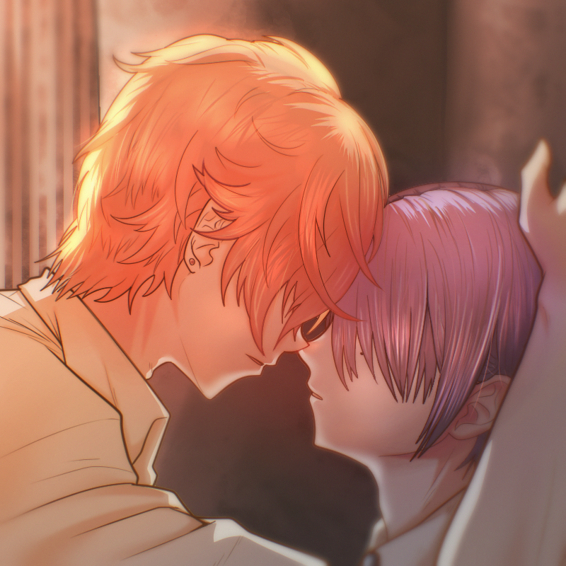 一枚目はこれからキスしそうな距離、二枚目はその後っぽい差分(銀の糸を描き足しました)。