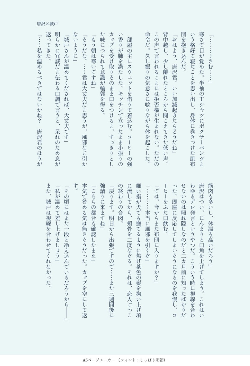 珍獣倉庫番☆quiet followDONE上層部グルメ互助会20201009提示お題『朝の冷え込み』今回は字もので。唐城戸セフレ。 ##ワートリ ##唐城戸 ##唐沢 ##城戸 Tap to full screen (size:888x1300).Repost is prohibited Let's send reactions! freqpopularsnackothersPayment processing Replies from the creator Follow creator you care about!☆quiet follow 珍獣倉庫番DONEこっそりいちゃつく城戸司令と鬼怒田さん、っていうお題頂いたんですが、見た瞬間「わかってくださってる~~~!!!!!」と盛大ににやついてしまいまして…大感謝ですありがとうございました…🙏こっそりなのか甚だ疑問なおじさん2人と、エレベーター前ですれ違う沢村さんは被害者ごめん。 珍獣倉庫番DOODLEきぬたさんの顔見て気が抜けちゃうきどさんいてほしい 珍獣倉庫番DOODLEおぱーいと胸の毛注意。きぬたさんに小さなわがまま言うきどさんかわいいもんな…。 珍獣倉庫番DOODLE上層部グルメ互助会2022/1/3お題「腕時計」きどさんは自覚したら独占欲少し持ちそうだし、腕時計とかハンカチとか贈ってマーキング(?)してほしい。 珍獣倉庫番DOODLEただのえろらくがき背後注意。きぬたさんがでかくなった。固定派様の貴重な、優しくてえろい城戸鬼怒拝読したので自制心が死にました。ついったで「城戸鬼怒」で検索したら出てくるかと思いますので探してみてね…タイムラインに直で貼ってらっしゃるので私はRTできないんだごめん。 珍獣倉庫番DOODLE上層部猥談(というかただの女の好きな部位ぶっちゃけ)酒飲み会。私個人の独断と偏見と好みによるものです大いにふざけ倒してしまい大変申し訳ございません楽しかったです。 4 recommended works 珍獣倉庫番DOODLE酔うと無意識に誘い受けオーラ振り撒くきどさんっていますか(いない) kmgtm931PAST sarusa1212DOODLEワートリ好きなんだけど絵柄公式に寄りがち。自分の絵柄に落とし込めてるかな。冬島隊が好きです。 まる@雑多BLANKワートリアニメ待機中に描いてた箱詰め修遊修ラフ reo_mikamiMOURNINGヒュース髪型むり泣く キルカDOODLE2022/07/17駒を左馬(何やら縁起の良い置物/鏡文字になってる)にしようと思ってたのに普通の馬にしちゃってる事に今になって気づいた…文字全然見えないけども🥦 fujisa075_suaDONEかわかわデザインにできた✌🏻 もくこDOODLE玲とくまちゃん。完全なる個人の好みなのですが、この2人は制服のスカート膝丈がいいなって思う。 ksnw_rkgkDOODLETwitterのワートリメンバーでランダム部隊を作るやつでイコさんのお名前でやってみたらできたやたら圧が強い部隊のらくがき