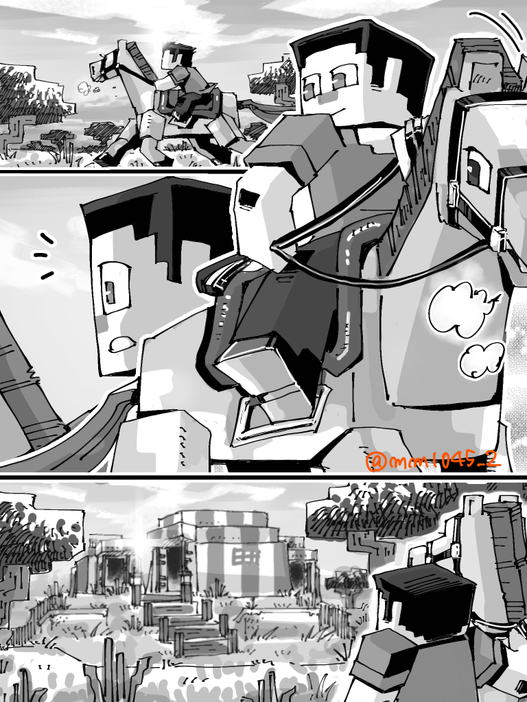 自分がマイクラやってて、ふと、村の中を走り回ってる茶トラの猫🐈を『そーいえば、色的にアレックスみたいだなぁ…』と思ったのを描き留めておきたかった。