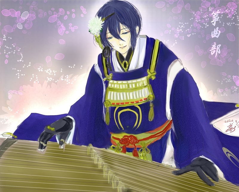 三日月さんも琴も。描いてるうちに真面目になった。うちの本丸、楽器が有り余ってるから部活できるわ