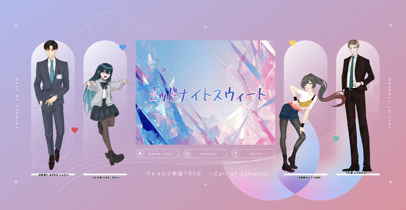 sujyo_trpg☆quiet followINFOクトゥルフ神話TRPG*───────── ミッドナイトスウィート ─────────*𝐊𝐏𝐂/𝐊𝐏名取 椿 / 木更津さん𝐏𝐂 / 𝐏𝐋火丸 世恋 / こもるるさん水掛 愁士 / もきちさん下町 塁 / 数条❚ END A「俺は、名取の夢を叶えたいからさ」 #数条の通過報告 Tap to full screen (size:2684x1390).Repost is prohibited Let's send reactions! freqpopularsnackothersPayment processing Replies from the creator Follow creator you care about!☆quiet follow sujyo_trpgINFOクトゥルフ神話TRPG✼••┈┈••✼••┈┈••✼ 花冷えに亡く季節✼••┈┈••✼••┈┈••✼𝐊𝐏:こもるるさん𝐇𝐎𝟏 イーヴィー・リー / 数条𝐇𝐎𝟐 パメラ・シモンズ / ウサギさんEND1「あいしてるわ、パメラ」 sujyo_trpgINFOクトゥルフ神話TRPG──────────────────── 日常のすゝめ ◼︎case01/ぎゅっとして◼︎case02/路地裏のラーメン屋────────────────────𝙺𝙿𝙲 / 𝙺𝙿物集 希柊 / 木更津さん𝙿𝙲 / 𝙿𝙻陽籠 貂 / 数条▸シナリオエンド「ほな。次は、また」 3 sujyo_trpgINFOクトゥルフ神話TRPG◤ DIAMOND RIP TRAP ◢𝙺𝙿𝙲 / 𝙺𝙿幽ヶ嶺 鷹願 / 数条𝙿𝙲 / 𝙿𝙻重陽 輪 / 小鳥遊さん▸ 両生還「僕の相棒は輪くんでしょ。だから、君のだよ」 sujyo_trpgINFOクトゥルフ神話TRPG◤ ハトヴの晩餐 ◢𝙺𝙿𝙲 / 𝙺𝙿手毬 大 / もきちさん𝙿𝙲 / 𝙿𝙻縁廻 海貴 / 数条▸ シナリオクリア「だからずっとそばにいて。ヒロ」 sujyo_trpgINFOクトゥルフ神話TRPG◤ は!?俺とお前が恋仲ってガチ!? ◢𝙺𝙿𝙲 / 𝙺𝙿篝 契介 / 数条𝙿𝙲 / 𝙿𝙻弓鳥 藤 / もきちさん▸ END2「……しかと胸に刻んでおくよ」 sujyo_trpgINFOクトゥルフ神話TRPG◤ 鬼の棲む ◢𝙺𝙿こもるるさん𝙿𝙲 / 𝙿𝙻海枯 誠 / 数条▸ シナリオクリア「俺は、それがひどく羨ましい」 related works sujyo_trpgINFO▎𝐂𝐚𝐥𝐥 𝐨𝐟 𝐂𝐭𝐡𝐮𝐥𝐡𝐮『The Hog Game』 ❐ KPC / KP: シェザ・S・シェルヴィー / 数条 ❐ PC / PL: アルジャーノン・ブロンド / もきちさん────────────────▼ シナリオクリア「紅茶を淹れたまえ。砂糖は、——」 sujyo_trpgINFO❚ 𝒸𝒶𝓁𝓁 ℴ𝒻 𝒸𝓉𝒽𝓊𝓁𝒽𝓊 Mr.アンラッキー&Ms.グッドラック-ᴋᴘ 茂木さん-ᴘᴄ/ᴘʟ - HO1.アンラッキー Jack Hustler ┊ 数条 - HO2.グッドラック Giulietta Nerine┊ もきちさん▽ 両生還「俺たちの出会いに。」 sujyo_trpgINFO▎𝐂𝐚𝐥𝐥 𝐨𝐟 𝐂𝐭𝐡𝐮𝐥𝐡𝐮 『初恋性ストックホルム症候群』 ❐ KP / KPC:こもるるさん / 志水 大犀 ❐ PL / PC:数条 / 瀬戸 明日香────────────────▽ シナリオクリア 両生還「……マジで、責任取れよな」 sujyo_trpgINFOクトゥルフ神話TRPG╋━━━━━━━━ 今宵限りは仰せのままに━━━━━━━━╋𝕂ℙℂ/𝕂ℙ:アルジャーノン・ブロンド / もきちさんℙℂ / ℙ𝕃シェザ・S・シェルヴィー / 数条▽シナリオクリア「どうやら、君には再教育が必要らしい」 sujyo_trpgINFOクトゥルフ神話TRPG◤ 頭がお花畑(物理)のKPCと遊園地を駆け抜けるシナリオ ◢𝗞𝗣𝗖/𝗞𝗣秋海堂 継 / スペトナ𝗣𝗖 / 𝗣𝗟黒乃瀬 湊 / 朱莱椿紅 狼煙 / ウサギ針間 雄平 / 数条(敬称略)▸ END1にてシナリオクリア「はは! 楽しかったな」 sujyo_trpgINFO▎𝐂𝐚𝐥𝐥 𝐨𝐟 𝐂𝐭𝐡𝐮𝐥𝐡𝐮『1st GAME-捜査一課は、英雄じゃない』𝐊𝐏║こもるる𝐏𝐂/𝐏𝐋║ 小判 猫 / 数条║ 古町藤 絆 / すぺとな║ 取絲 葦利 / 朱菜║ 赤鱏 燎火 / ウサギ(敬称略)────────────────▼ END.A 全生還「皆さんとなら 絶対にこれからも、」 sujyo_trpgINFO▎𝐂𝐚𝐥𝐥 𝐨𝐟 𝐂𝐭𝐡𝐮𝐥𝐡𝐮 『しんでなんかないよ』 ❐ KP / KPC:数条 / 黒葛 連理❐ PL / PC:ひつじの* / シャロン(敬称略) ──────────────── ▽ END1 両生還「はいはい、シャロンの仰せのままに」 sujyo_trpgINFO❚ᴄᴀʟʟ ᴏғ ᴄᴛʜᴜʟʜᴜ 『Owl Clock -怪盗と宝石の声-』-ᴋᴘ ここあさん-ᴘʟ/ᴘᴄ ➢HO.アウル 数条 ┊ 菫園 徠斗 ➢HO.クロック 茂木さん┊ 大我 天満END:「始まりの終わり」 両生還 sujyo_trpgINFOクトゥルフ神話TRPG✼••┈┈••✼••┈┈••✼ 花冷えに亡く季節✼••┈┈••✼••┈┈••✼𝐊𝐏:こもるるさん𝐇𝐎𝟏 イーヴィー・リー / 数条𝐇𝐎𝟐 パメラ・シモンズ / ウサギさんEND1「あいしてるわ、パメラ」 recommended works domdoo00meDONE漫画続きおまけ我慢できず玄関で始めちゃうしグダグダな翌朝アバブ(笑) 2 oba_ringoffireMEMOイルミネーションの街で私服デートのオスリモ。背景はネットでみつけた無料写真です。※別キャラパーツ組み合わせにつきワンクッション※ guriko_hnfjINFOCOC:幻シ症とアイロニー作者様・KP/KPC:イレンさん/星野晃生PC/PL:星川心愛/ぐりこENDC-1にてシナリオ終了 fuuka_615MEMO現パロアイロジ妄想 283 翔田ますみDONEちびホーの漫画におまけを足してpixivにまとめました。いつもスタンプありがとうございます!https://www.pixiv.net/artworks/125354150 watarunrun1016DONE宇宙に輝くキラキラ星!キュアスター! inochi01DOODLE烏が群れては、極彩色 一応