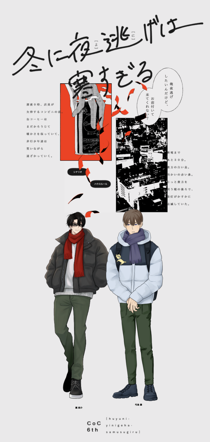sujyo_trpg☆こそフォロお知らせクトゥルフ神話TRPG◤ 冬に夜逃げは寒すぎる ◢𝐊𝐏𝐂 / 𝐊𝐏篝 契介 / 数条𝐏𝐂 / 𝐏𝐋弓鳥 藤 / もきちさん▸ END-A「……ありがとう」 タップで全画面(原寸:704x1480)無断転載禁止 リアクションをたくさん送って応援しよう! よく使う人気おやつその他支払処理中 作者からのリプライ 気になる人をどんどんフォローしよう!☆こそフォロ sujyo_trpgお知らせクトゥルフ神話TRPG◤ 冬に夜逃げは寒すぎる ◢𝐊𝐏𝐂 / 𝐊𝐏篝 契介 / 数条𝐏𝐂 / 𝐏𝐋弓鳥 藤 / もきちさん▸ END-A「……ありがとう」 sujyo_trpgお知らせクトゥルフ神話TRPG◤ 癪熱 ◢𝐊𝐏𝐂/𝐊𝐏添立 思鴛 / 数条𝐏𝐂/𝐏𝐋乍榮 玉緒 / もきちさん▸ END「二人」 両生還「はは、絶対泣かす」 sujyo_trpgお知らせクトゥルフ神話TRPG◤ みっともないよミッドナイト ◢𝐊𝐏𝐂 / 𝐊𝐏クルーピエ / 数条𝐏𝐂 / 𝐏𝐋サベイランス / ウサギさん▸ シナリオクリア「ぜひ。また飲みに行きましょう、あっきー」 sujyo_trpgお知らせクトゥルフ神話TRPG◤ 花雷 ◢𝐊𝐏𝐂 / 𝐊𝐏東風屋 霖太郎 / 数条𝐏𝐂 / 𝐏𝐋藤宮 幸之介 / ウサギさん▸ END-A 両生還「約束ですよ。藤宮さん」 sujyo_trpgお知らせクトゥルフ神話TRPG◤ 愛憎Swamp! ~這い寄れ!俺のクズ物語~◢▮KP木更津さん▮PC/PLHO1 夜薙 真澄/数条HO2 蒲沢 ハジメ/もきちさんHO3 巳波 壱彦/小鳥遊さんHO4 春原 柘榴/こもるるさん ▸ END-C:2生還2ロスト「これからも、ずっと一緒にいよう」 sujyo_trpgお知らせクトゥルフ神話TRPG◤ Re:DogTag ◢𝐊𝐏𝐂 / 𝐊𝐏篝 契介 / 数条𝐏𝐂 / 𝐏𝐋弓鳥 藤 / もきちさん▸ END-A「っはは……お前、言うようになったなあ」 おすすめ作品 唯翔(yuito)できた第腐/裸えぷろんいそぺ jmilytm95らくがきmy oc18? 3 テルダイらくがき1分お絵描きチャレンジでかいたもの第4弾 ミスターファンコンピューター帽子のつばなくて草 しまらっきょお知らせA21アンソロに寄稿したまんがのサンプルです!本編R18になってます以前個人的に描いたネタのフルリメイクでお邪魔させていただきますよろしくお願いします~!18↑?→y/n げんかいしゅうらくできた唯一の友/アサフ みるく雨自主練ウェンティちゃん kooiko28過去のを晒す2024/11/23存檔 3 ippan_nekoらくがき同じ空には昇れない。 現行未通過❌秘匿待ち中に描いた落書き②ヴッ sakusakuoudonできたVOID現行未通過✖同卓✖昨日の