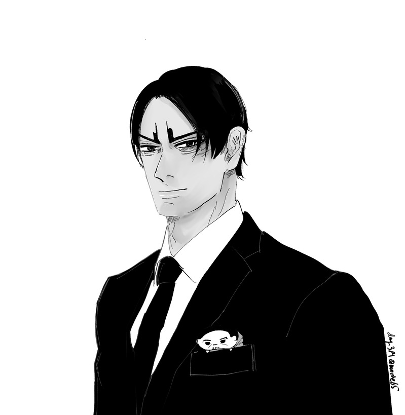 チーフの代わりにのる島をポケットに入れた鯉登・スーツ
