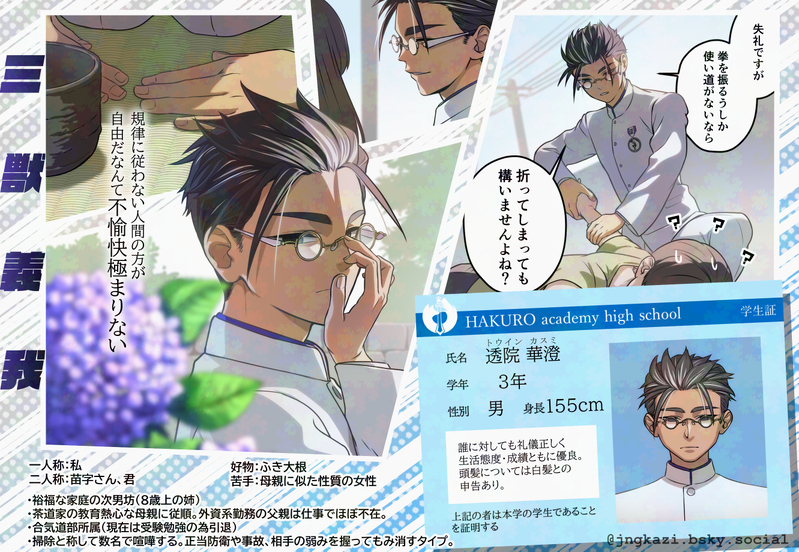 gtgt_jng☆quiet followDONE【bluesky創作企画】三獣義我【@ 30giga.bsky.social】透院 華澄(トウイン カスミ) ハクロウ学院高等部3年 男 身長155cm~メモ~・表向き誰にでも礼儀正しく誠実な態度で接する・母親がヒステリック気味で厳しくストレスで白髪が目立つようになった・信号無視や喫煙など違反行為をした学生を見つけては仲間と一緒に痛めつけに行く(憂さ晴らし)※基本透院からは手を出さず、掴まれたりしたら合気道で転ばせて、あとは仲間がボコるスタイル。(イメージP2)・背が低いことは気にしてない・顔の識別ができないくらいの近視(シルエットでおおまかには分かる) ##三獣 show all(+2 images) Tap to full screen (size:1331x920).Repost is prohibited Let's send reactions! freqpopularsnackothersPayment processing Replies from the creator Follow creator you care about!☆quiet follow gtgt_jngDOODLEれんさんハピバの羊狐FA gtgt_jngDOODLEリンバスのヴェルおじ gtgt_jngDOODLEリンバスのヒース gtgt_jngDOODLE某野球チームの某ダンスパロ(画像参考) gtgt_jngDONE金切さんハピバ花はシオン gtgt_jngDOODLE1年くらいに目立つ人には一通り声かけてそうだし順位低い人間は興味なさそうな柳原クンに見下してもらいたかった(ただの中の人の願望)お借りしました!柳原クン【 @nige6.bsky.social 】不都合等ありましたら恐れ入りますがご一報ください! recommended works あたしDOODLE Do not Repost・東龍PAST………あぁwwwアイコン、指で押してるのかwwwくそっ、笑ったwww hanken_NTRAINING1若2若3若まとめ資料が少な過ぎてあまり練習にならなかった…(どうでもいいけど生みの親が同じなだけに心なしかセフィロスに見える) 3 kamekoroDOODLEボールペン一発描き筆ペンでベタ塗り色の違いが〜( ̄▽ ̄;) りぃさんDONEエドガーと待ち合わせしたい人生でした。 某倉庫DONE勇者にはなれなかった。世界を滅ぼした少女。あかいおうさま。喰世王。 白咲けいなDOODLEこの間めめこと話してて死んだやつ。だいすくん、公式絵よりもガタイが良いという幻想から抜け出せない……(公式が公式ですが……?)だって177センチの77キロだよ……あんなに胴体うすっぺらいわけなくない……?やっぱり虚偽かぁ………… 鈴おやつ。DONEくくタカ 睦月あきらTRAINING透明水彩で練習にダンデさん。ダンデさん好きだーうまくなりたいー