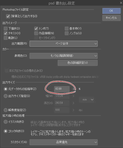 1、原稿全部がB5判の場合一括書き出しの時に82%(81.80)縮小で書き出す(前にやった)