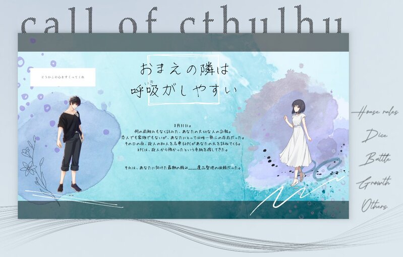 アスナロ☆quiet followMEMOCoC『おまえの隣は呼吸がしやすい』KP:すこさんPL:アスナロEND1両生還にてシナリオクリアでした!お、お、おあああああ言いたいこと全部ネタバレになるから言えんけど楽しかったよおおおおお継続行きましょ!!!ありがとうございました! Tap to full screen (size:1262x806).Repost is prohibited Let's send reactions! freqpopularsnackothersPayment processing Replies from the creator Follow creator you care about!☆quiet follow アスナロDONE🎉🎂0917 Happy Birthday🎂🎉Illust:何某 アスナロMEMOCoC『やさしいキミのこわしかた』KP:bloomさんPL:アスナロエンドA-1にてシナリオクリアでした!久しぶりにセッション中にここまで泣きましたボロボロです。でも投げっぱなしじゃなかったので助かりました。2日目は探索者も泣いたのでPLも泣いていいんです我慢できんかったありがとうございました! アスナロMEMOCoC『悪辣』KP:きらさんPL(HO順):アスナロ、bloomさん、すこさん、すしさんエンド1 全生還にてシナリオクリアでした!全力で悪い奴やりに行ったつもりですけど出目にすんごい足を引っ張られましたこれだから出目カスは......でもとっても楽しかったのです!ありがとうございました! アスナロMEMO第二回探索者天下一武道会PL(50音順):彩硝子さん、くないさん、セプさん、bloomさん、ゆべしさん優勝はbloomさんの鬼灯莢さんでした!PL二連覇おめでとうございます🎉天下一年一企画にしたいぐらいに楽しいので来年もやりますありがとうございました! 2 アスナロMEMOCoC『Princess Hugging Race!!!』KP:すこさんPL:アスナロEND1にてシナリオクリアでした!めっちゃ楽しかった!何気にこの二人で遊ぶの久しぶりだったみたいですけどこの二人動かすの楽しくて最高でした!ありがとうございました! アスナロMEMOCoC『俺がお前のお姫様ッ!』KP:bloomさんPL:アスナロ両生還にてシナリオクリアでした!もう樹くんの可愛さが増し増しになってて最高でした、大好き愛してる3c3f!うーんいいんだかわるいんだかありがとうございました!