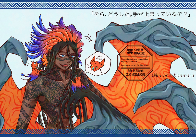 他の方と思いっきりポーズ被りを起こしてしまいました、本当に申し訳ない……描いてる間 気づかなかった……駄目そうなら消します、気をつけてくれ私……