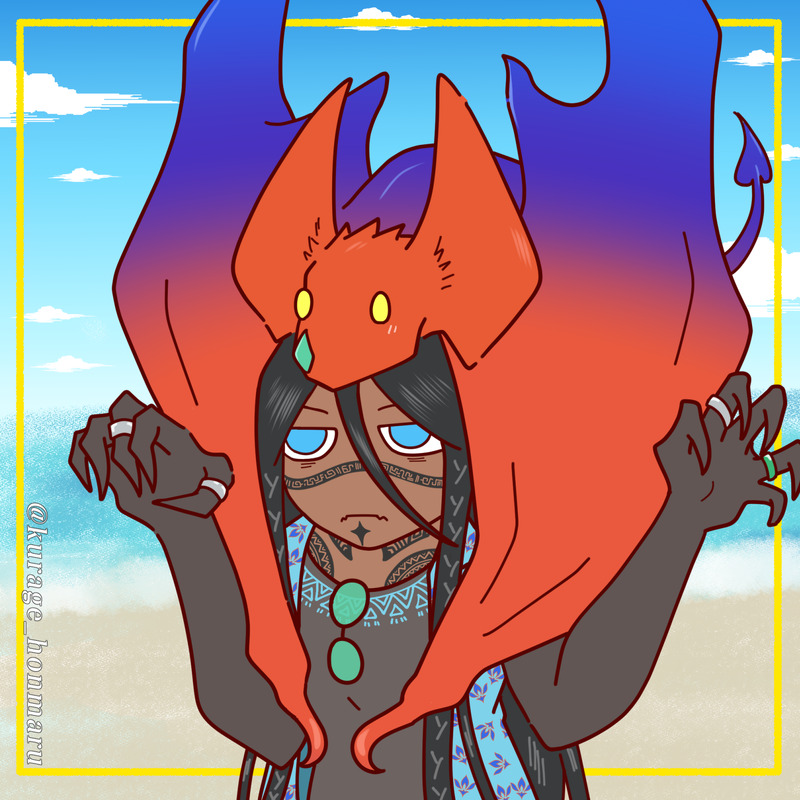 祭神の巫女を見て何か思いついたでっかいコウモリと、駄目だったらオレが謝ればいいかと思っているカマソッソ。(駄目だったら私が謝りますので)