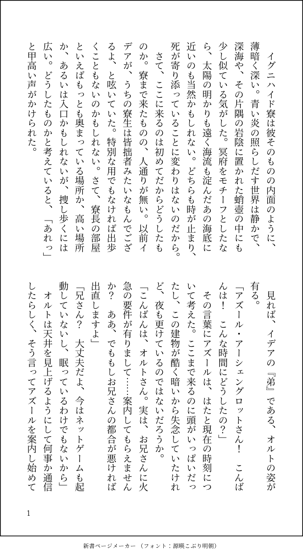 岩藤美流☆quiet followDONE歌詞から解釈するシリーズです。ワンライ作品の「さようなら、出会い」の続きとして書きました。 ##アズイデ短編 show all(+10 images) Tap to full screen (size:618x1132).Repost is prohibited Let's send reactions! freqpopularsnackothersPayment processing Replies from the creator Follow creator you care about!☆quiet follow 岩藤美流DONE現パロ、ルオが性に奔放すぎるバンドパロ 7754 岩藤美流DONE続きはありそうな感じだけどまだ全く書いてないです 9382 岩藤美流DONEを、書こうとしたけど実際は気持ち良すぎるのをやめてほしかったウィルルオ。本番から書いて前半を書き足したから、文体が違ってちょっとおもろい。 6889 岩藤美流DONE両片想いで、ルオが性に対して大らかすぎて不特定多数の男に抱かれている世界線のウィルルオです。仮タイトルは「モヤモヤ」でした。 8093 岩藤美流DONE今しか書けないから書いた10周年第1章、ナス君どうなるんだよ記念のらぶらぶえちちだけの短いお話です。もしナス君が堕ちたらこの後「ル・オーの望まない行為を無理矢理するし痛い」っていう対比に繋がるってワケ 5346 岩藤美流DONEただイチャイチャしてるだけでござる 3029 recommended works 岩藤美流DONE歌詞から着想を得て書くシリーズ①であり、ワンライの「さようなら、出会い」お題作品の続きです。参考にした歌は「A Love Suicide」です。和訳歌詞から色々考えてたんですけど、どうも予想通りタイトルは和訳すると心中だったようですが、あずいでちゃんはきっと心中とかする関係性じゃないし、どっちもヤンヤンだからなんとかなりそうだよな、と思ったらハッピーエンドの神様がゴリ押しました。 5991 あゆちんDONEがユンセンセのアー○アンを読破して感化されてしまった妄想。裁判でにかけられたシャを守るために嘘をつくアムさんと、愛を叫ぶシャ。 れんこんDONE第二回ベスティ♡ワンライ用フェイビリ/ビリフェイお題「HELIOS∞CHANNEL」 2313 TariDONE宇煉のワンライに参加した小説です!お題は「ジューンブライド」。「ヴァージン・ブリーズ」の続編ですが、これ単体でも読めます。 2142 MT24429411DONEラーヒュンワンライ「熱帯夜」 1703 MT24429411DONEラーヒュンワンライ「手指」 2827 YOI_heysDONE第1回 ヴィク勇版ワンドロワンライ『ひまわり』で書かせていただきました!ひっさびさに本気出して挑んでみましたが、急いだ分かなりしっちゃかめっちゃかな文章になっていて、読みづらくて申し訳ないです💦これが私の限界…😇ちなみにこちらhttps://www.pixiv.net/novel/show.php?id=17839801#5 の時間軸の二人です。よかったら合わせてご覧下さい✨ 2472 ao_lakeDONE半ロナワンライ お題「水族館」ナイトアクアリウムに参加する半ロナ 983 ao_lakeDONE半田とデートしたい高校1年生のロナルドとヒヨシのとても短い話。お題「春」と「続く」 869