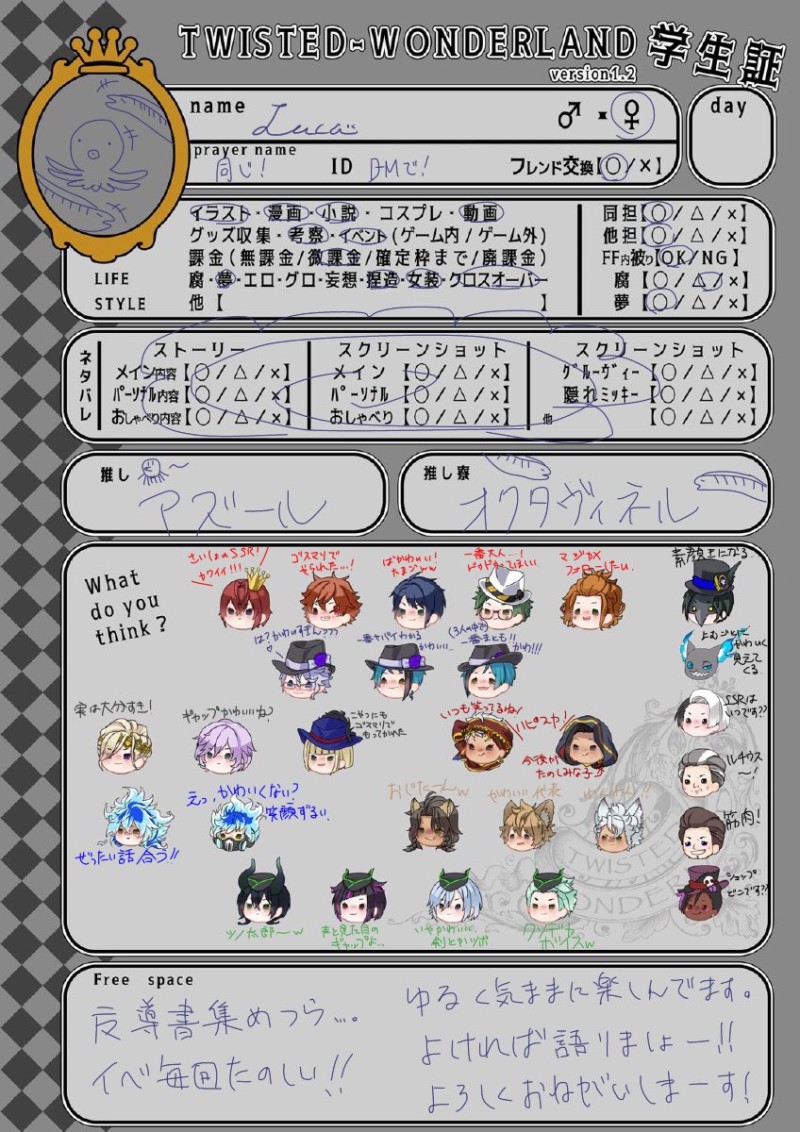 Lc_s__☆quiet followMEMO折角なのでこれまでの学生証も残しておく。(昇順) #ツイステ学生証 show all(+2 images) Tap to full screen (size:848x1200).Repost is prohibited Let's send reactions! freqpopularsnackothersPayment processing Replies from the creator Follow creator you care about!☆quiet follow Lc_s__MOURNING主催の企画絵。一枚目はわたちゃん(リリア @ wa_taaaru)との合作。 2 Lc_s__MOURNINGエース・トラッポラ誕生祭2021 Lc_s__MOURNINGジャミル・バイパー誕生祭2021 Lc_s__MOURNINGリドル・ローズハート誕生祭2021(2枚目文字なし差分) 2 Lc_s__MOURNINGオルト・シュラウド製造日2021(2枚目文字なし差分) 2 Lc_s__DOODLE緑で。 related works べこDOODLEピンク色のバレンタインなヨウグズ🍫 わたさくDOODLE きくちゃんDOODLEサタン様犬好きかと思いきやロクサーンみたいなパターンもあるのでやっぱ人外思考なのかな~ ちゃづDONE描いたやつその1※茨あん、ジュンあん 17 nnnnnnoodderaDONE【腐向け】チャバが酔ってハ崎さんに甘えてる漫画。ハ崎さんがトイレに行くのを我慢していたりする。 4 2watoyoDOODLE【朝のボールペン落書き】【日楠♀】【先天性女体化】日高先輩×男装後輩サキュバス家系楠ちゃん。海編。本当に気にしてるのは。 ココノカSPOILER幻覚なので全くネタバレではないけど1072話の発言ネタ ちゃづDONE描いたやつその1※茨あん、ジュンあん 17 きくちゃんDOODLEサタン様犬好きかと思いきやロクサーンみたいなパターンもあるのでやっぱ人外思考なのかな~ recommended works PeiaTRAININGステイ!!! 燐音(リンネ)DONE むたまろDOODLE✨🦇✨ gettenshiDOODLEラギー先輩可愛すぎんか? cheeseDOODLEジェイドはソックスガーターしてるんだろうか xxxtoko_twstMOURNING魔法史の授業は監督生以外みんな寝ているんだ(妄想) 2 ごちょーDONEぱいせ~ん!! うぇりDOODLE悪い顔好き ぺぺぺDOODLEルクハン2020/9/26