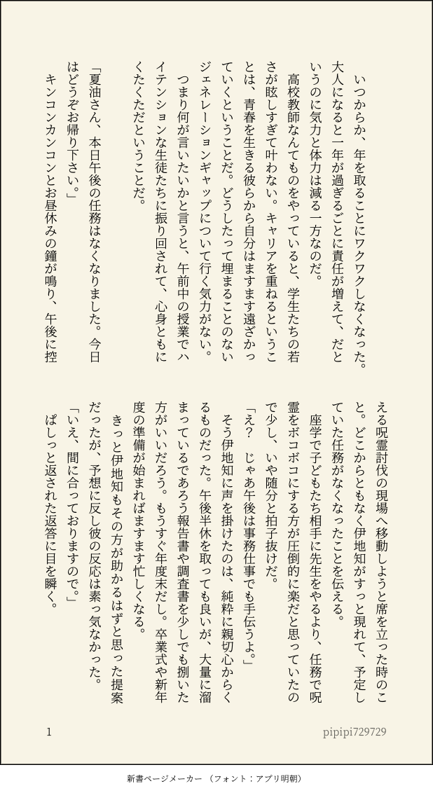 「夏油せんせ、肌綺麗だし化粧映えしそうなツラよね。五条先生までいくとやる気が失せるけど。今度やらせてくんない?」